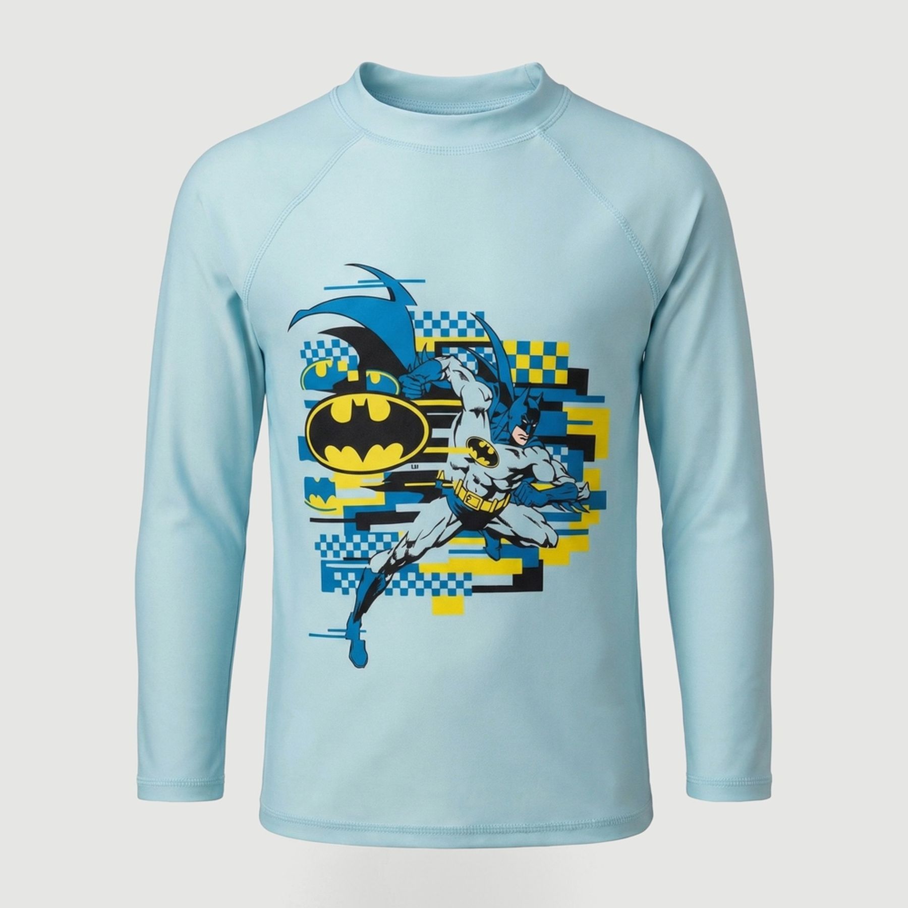 Economia de R$ 5,00Blusa masculina de manga longa do Batman, ideal para compor produções urbanas e esportivas. Confeccionada em malha sintética mista com predominância de poliéster, possui modelagem raglan, gola alta curta e barra simples, garantindo praticidade no uso.