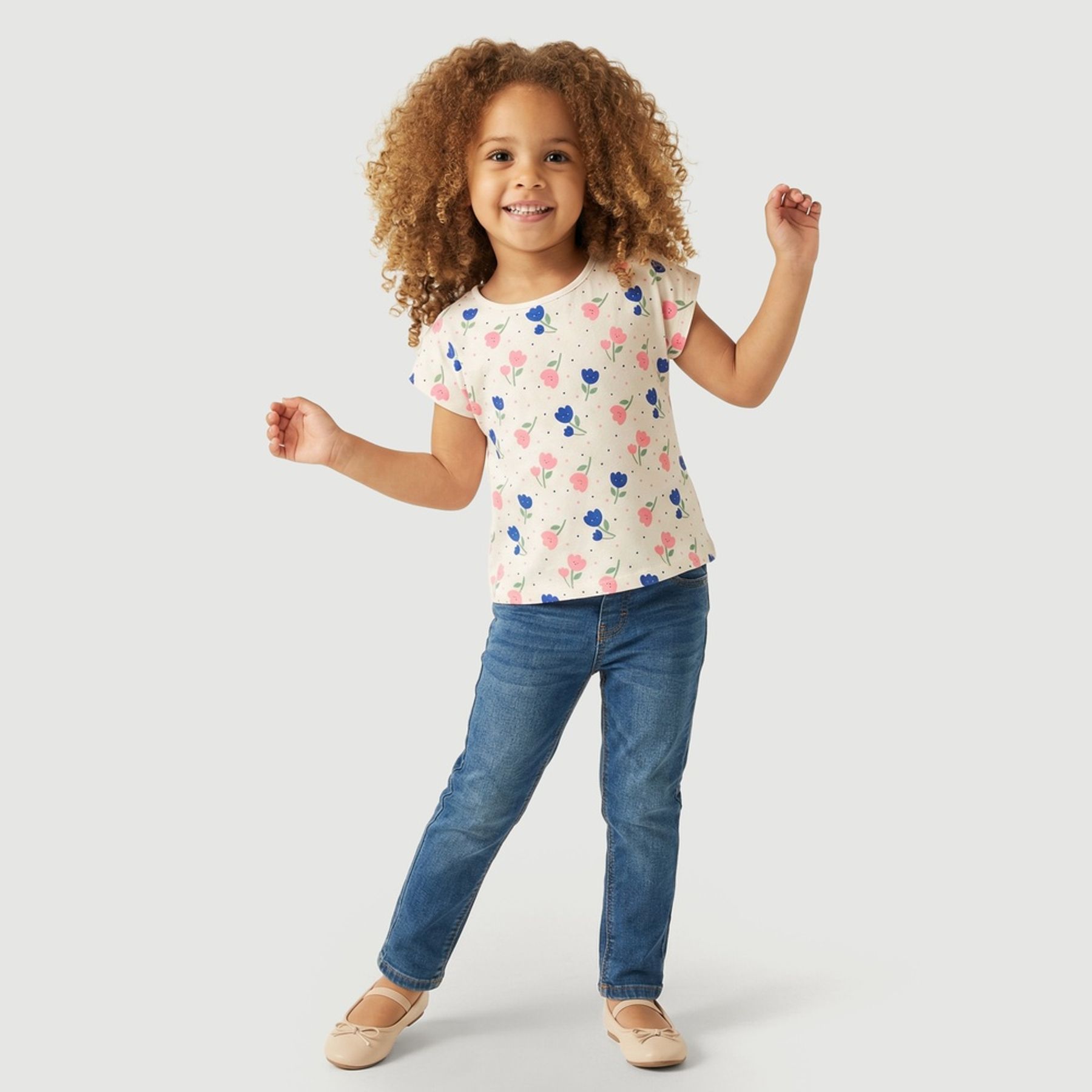 Blusa Infantil Manga Curta com Patches E Glitter Listrada Creme - Toys & Kids