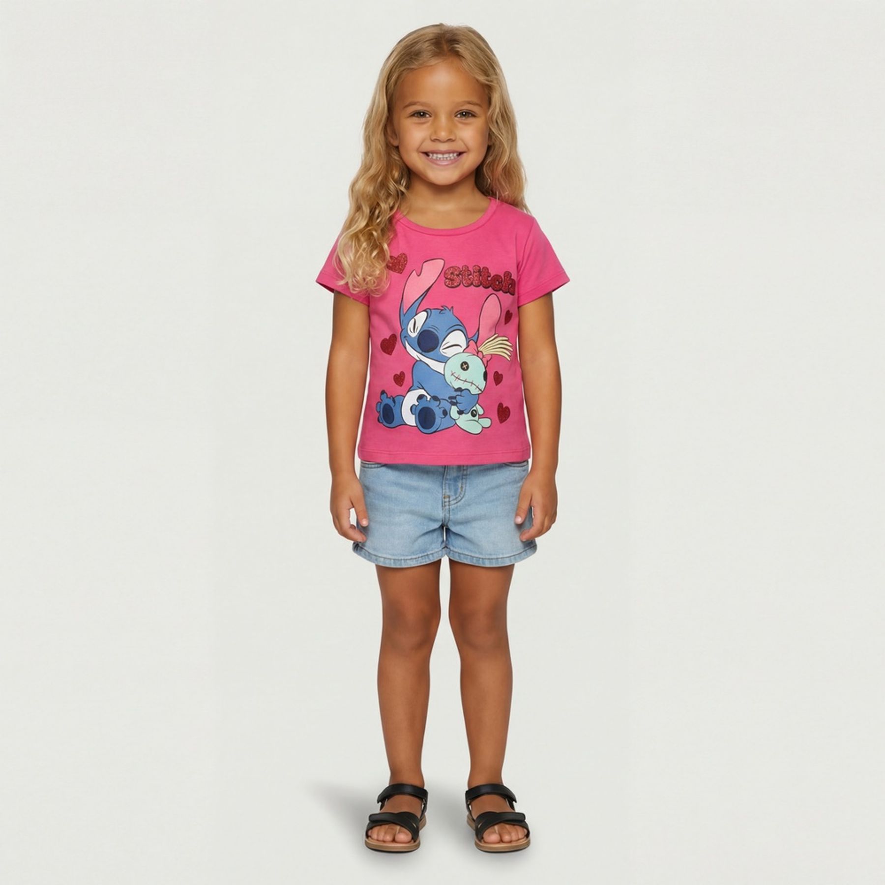 Blusa Infantil Manga Curta com Estampa Stitch Rosa - Disney