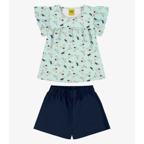 Conjunto Feminino Blusa com Shorts Trick Nick Azul
