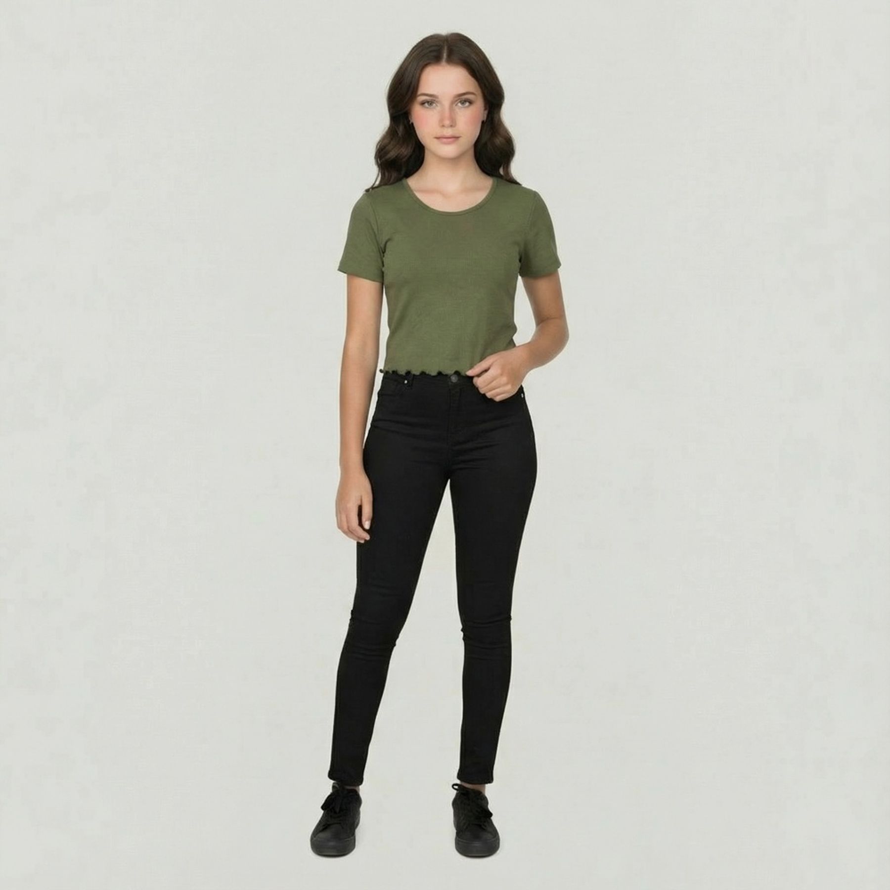 Economia de R$ 3,00Blusa feminina manga curta, perfeita para quem valoriza praticidade aliada ao estilo. Confeccionada em malha circular predominantemente poliéster, proporciona toque agradável e ótima adaptação ao corpo. O modelo liso verde, com gola redonda, é versátil para diversas combinações e ambientes descontraídos.