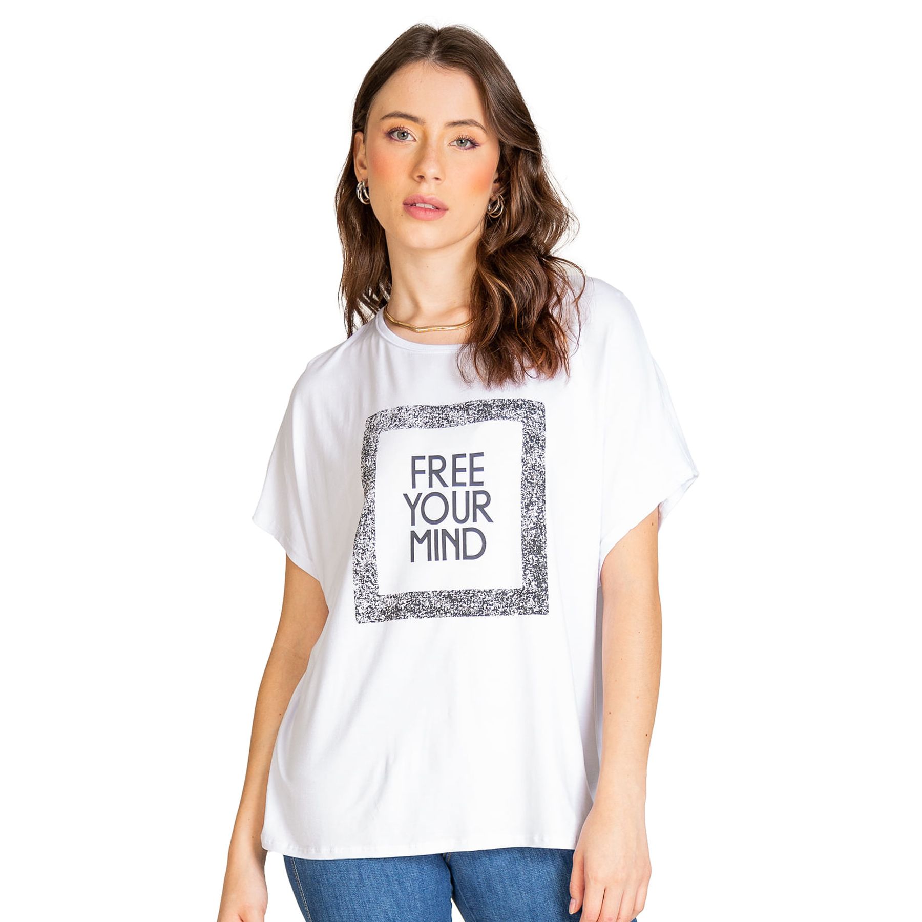 Camiseta Feminina Com Estampa e Rebite Dianna Preto