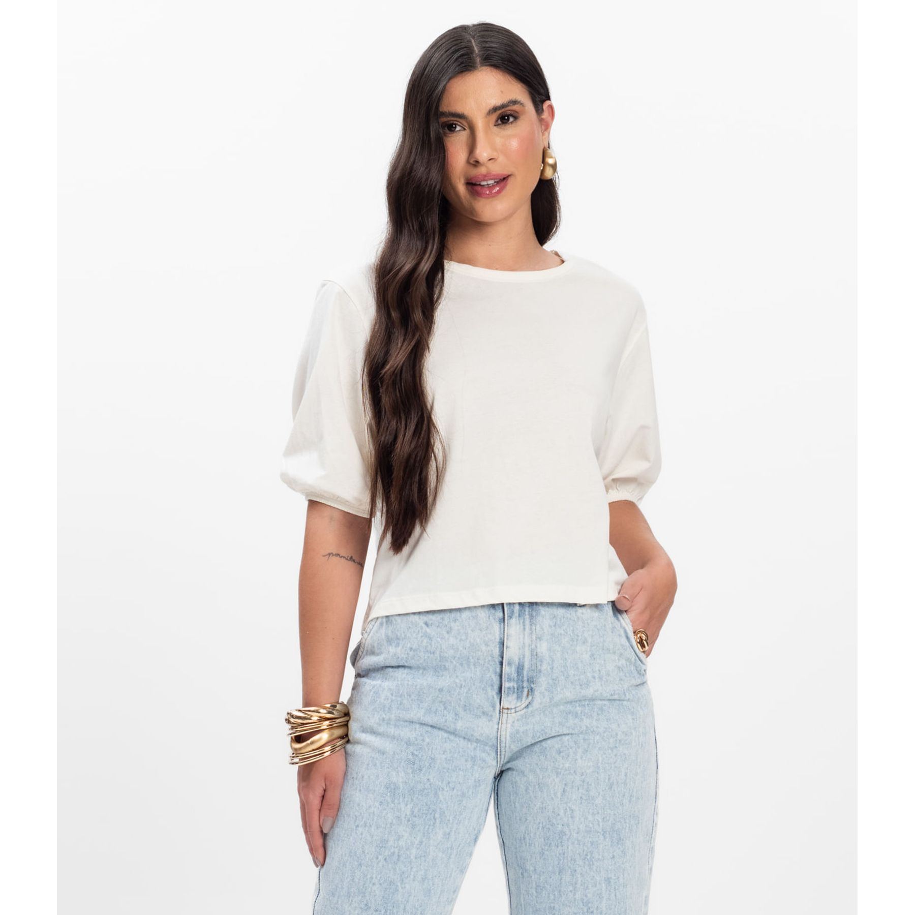 Blusa Feminina Manga Curta Infinita Cor Bege