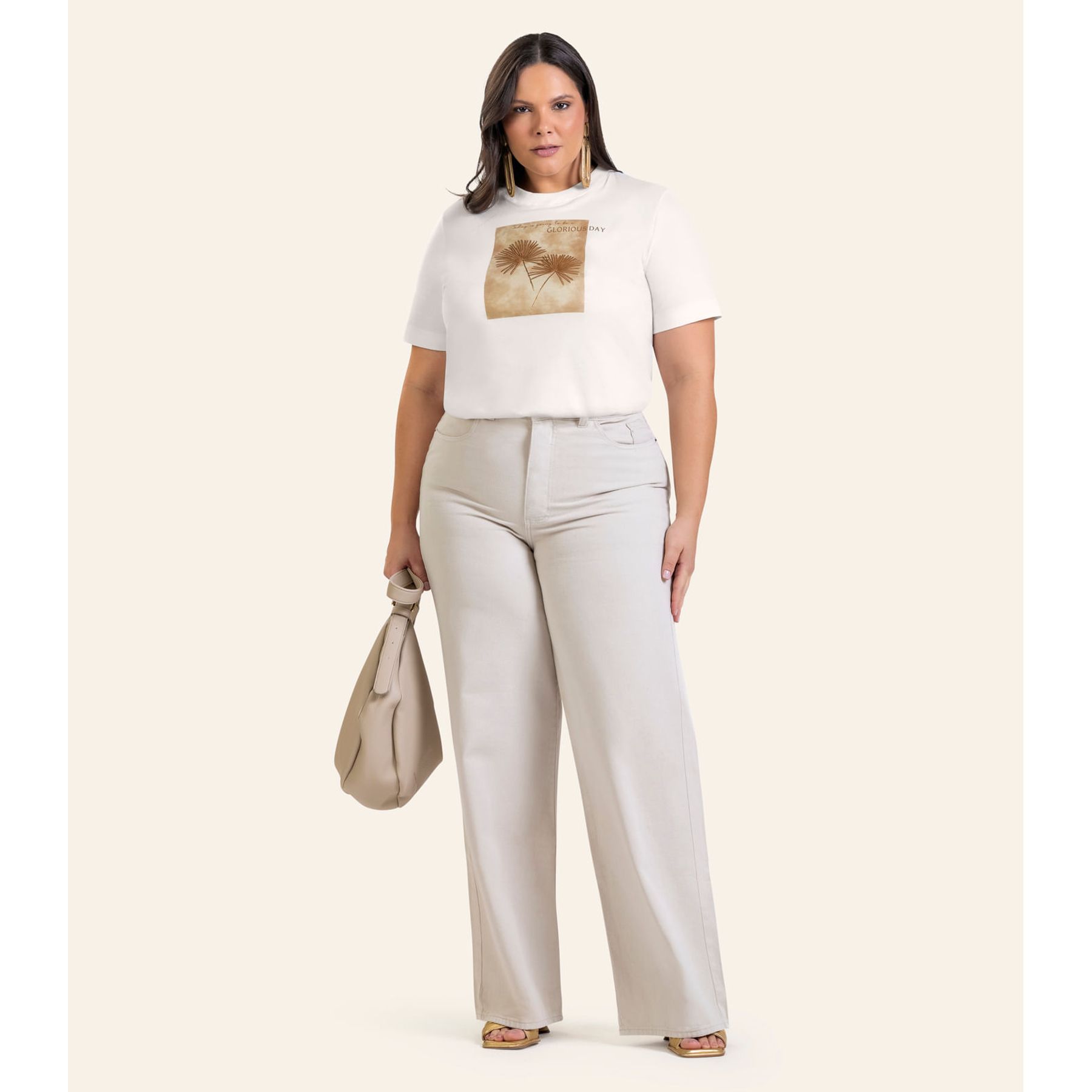 Blusa Manga Curta Feminina Plus Size Secret Glam Bege