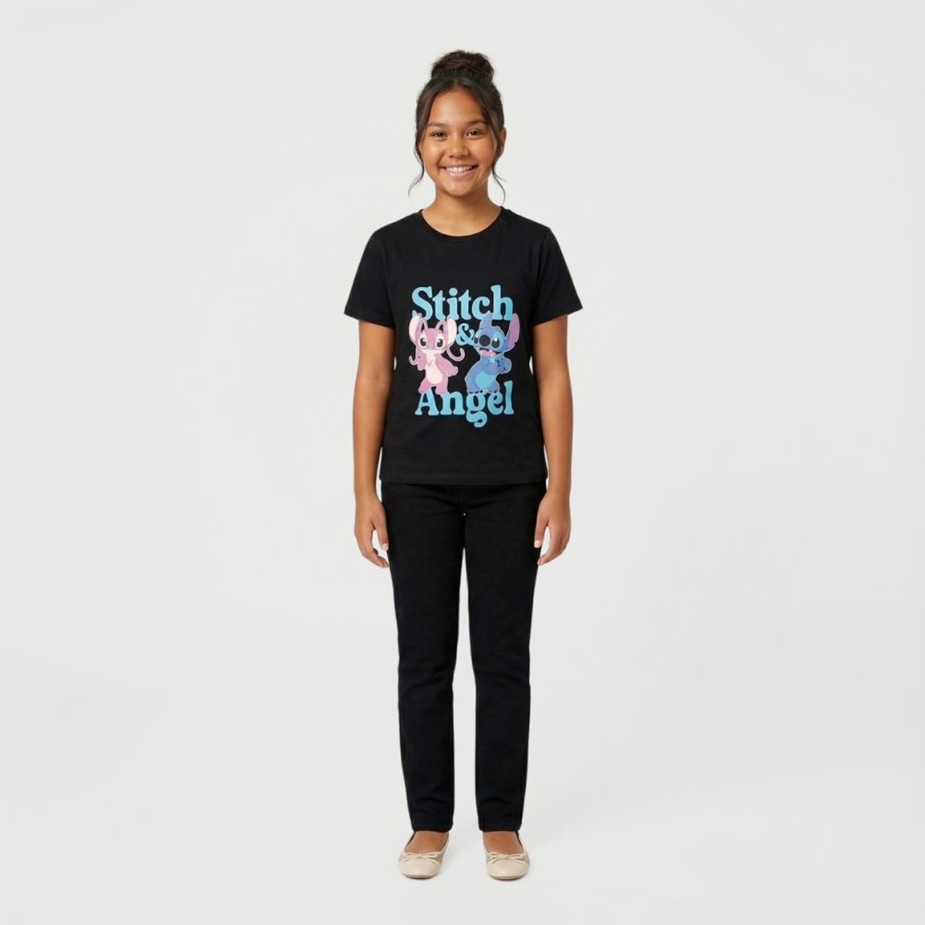 Economia de R$ 3,60Blusa feminina de manga curta confeccionada em 100% algodão, ideal para compor looks leves e despojados. O destaque fica por conta da estampa frontal com Stitch e Angel e lettering em tons de azul, rosa e roxo, trazendo um visual divertido para fãs da Disney. Possui gola redonda e modelagem confortável para uso em diferentes ocasiões.