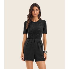Blusa Feminina Manga Curta em Ribana Endless Preto