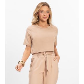 T- Shirt Feminina Cropped Dianna Bege