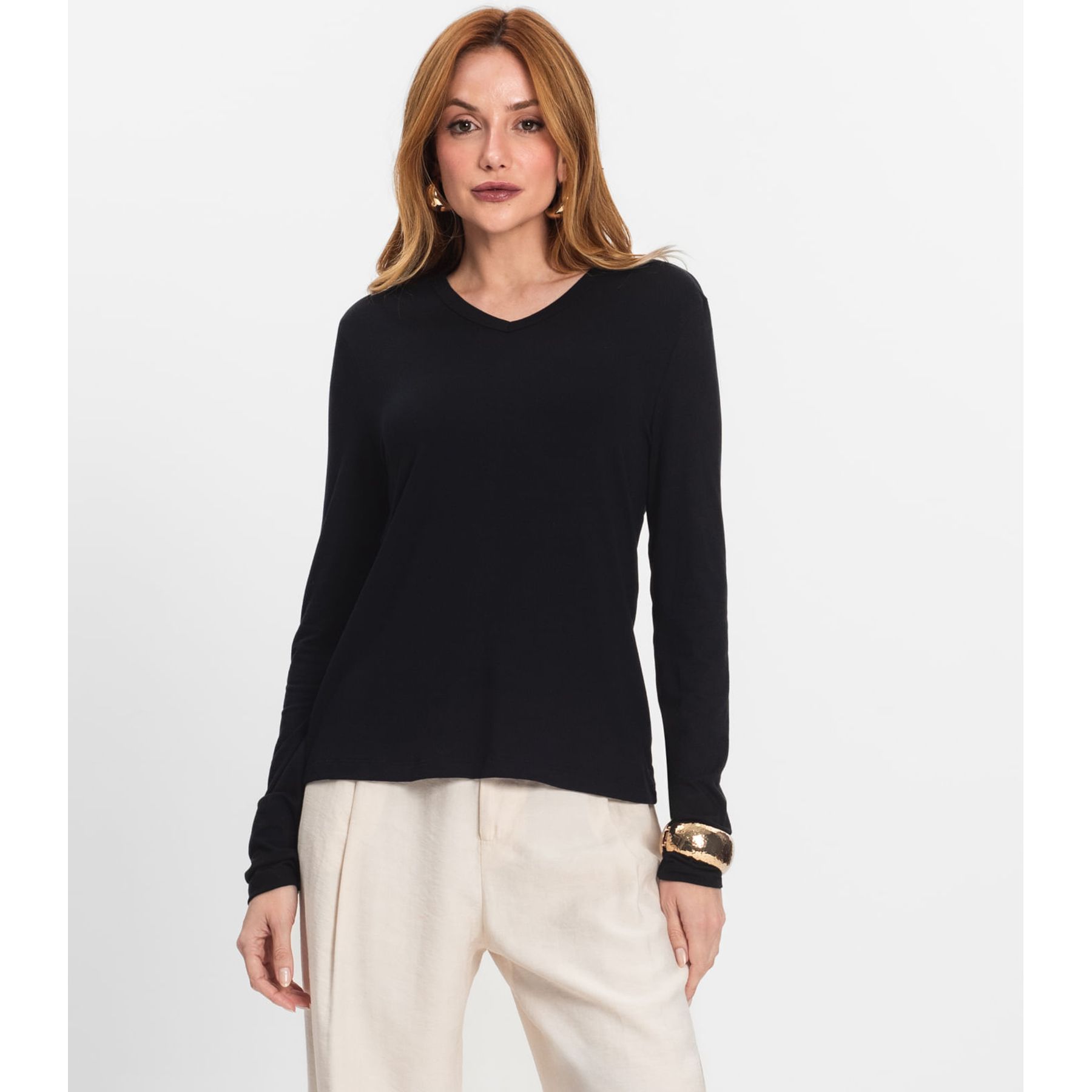 Blusa Manga Longa Plus Size Secret Glam Preto