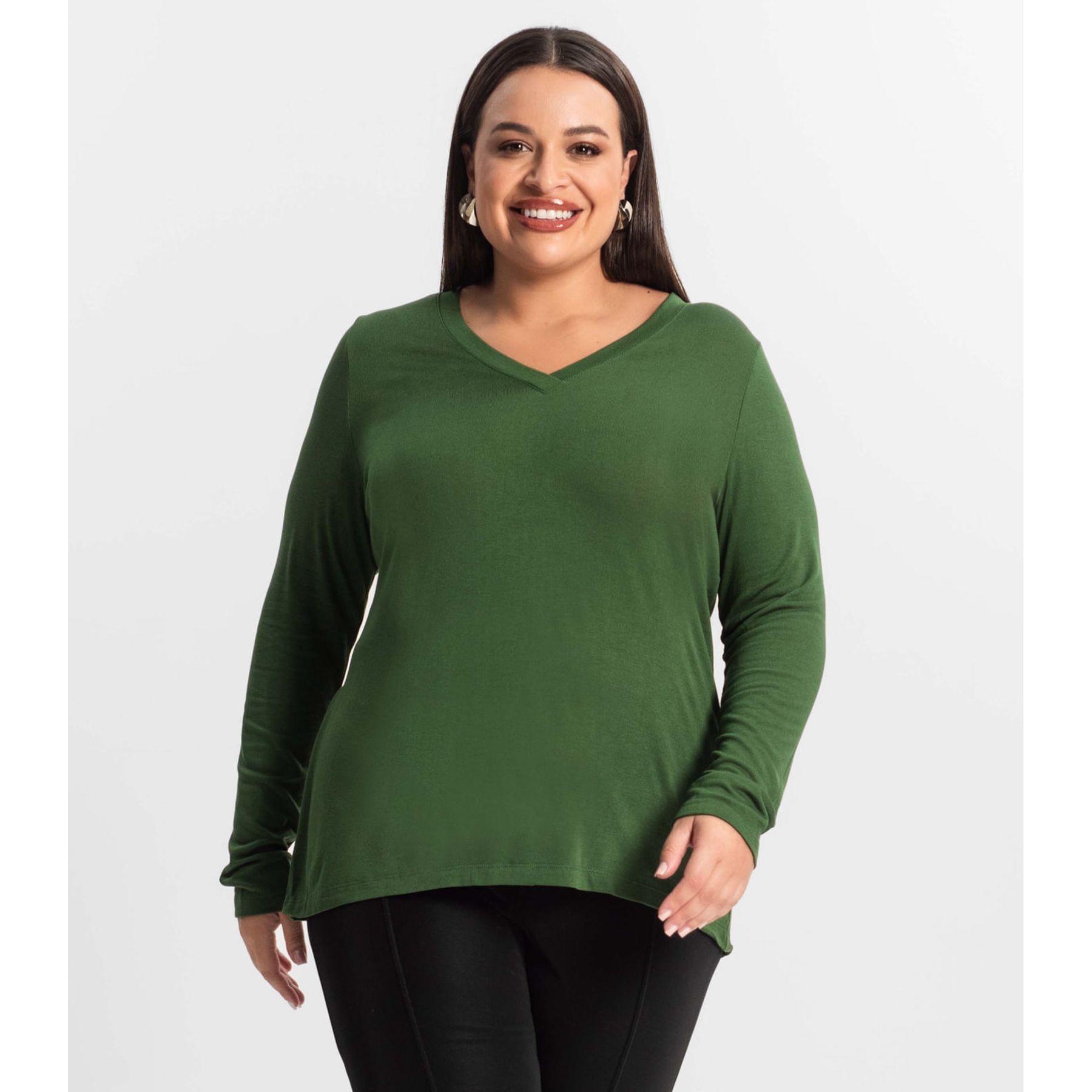 Blusa Plus Size Manga Longa Feminina Secret Glam Verde