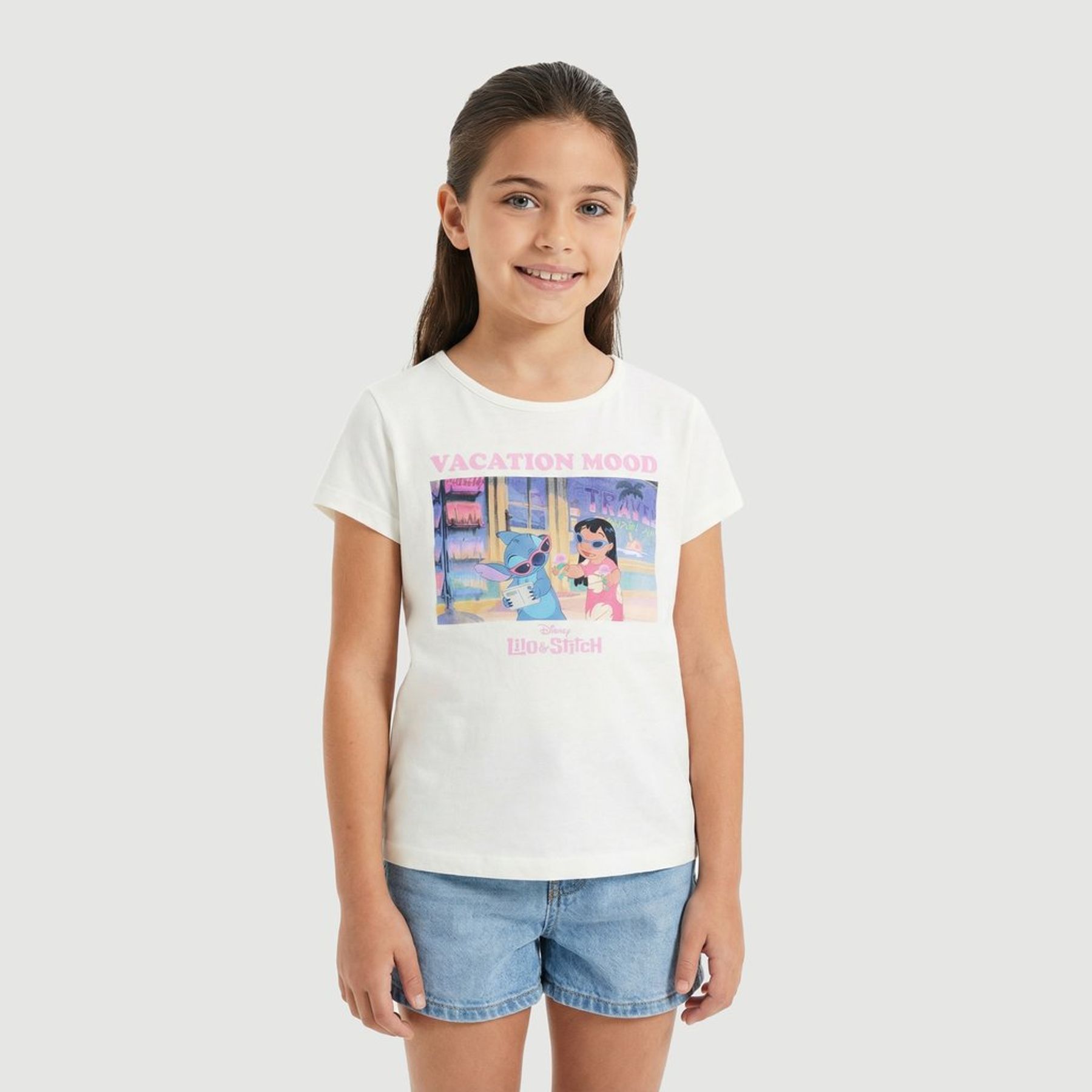 Blusa Manga Curta com Barra Em Elástico Estampa Stitch Lilás - Disney