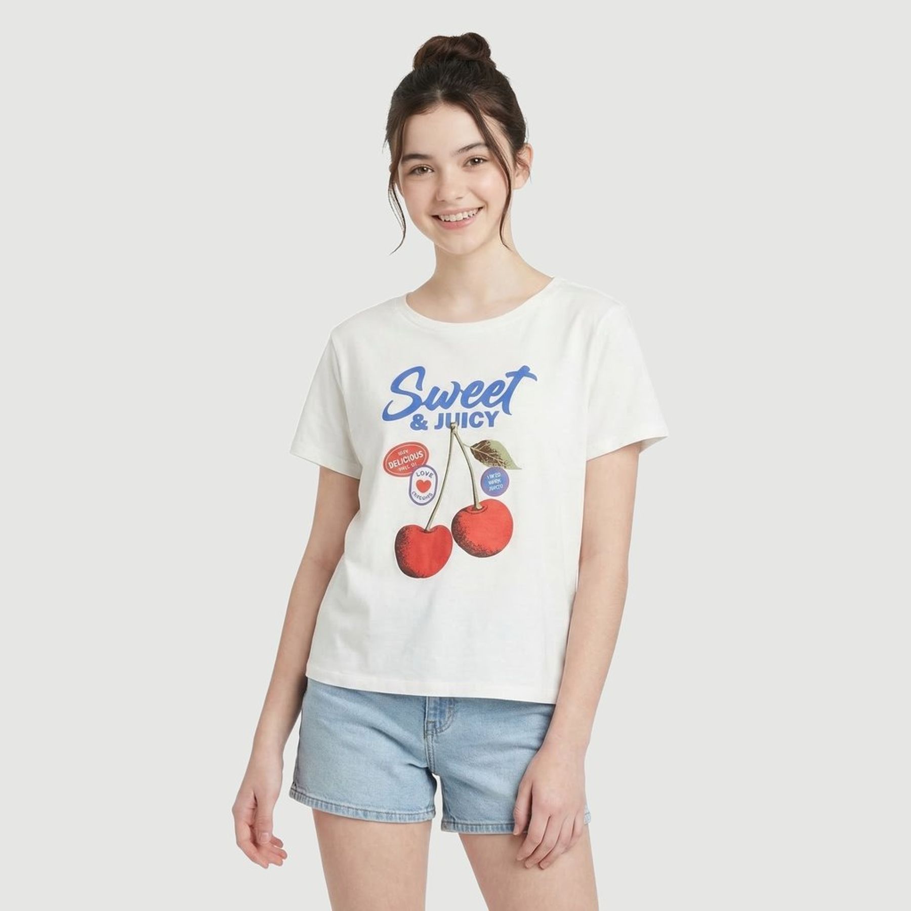 Blusa Feminina Manga Curta Estampada Bege - Hello Kitty