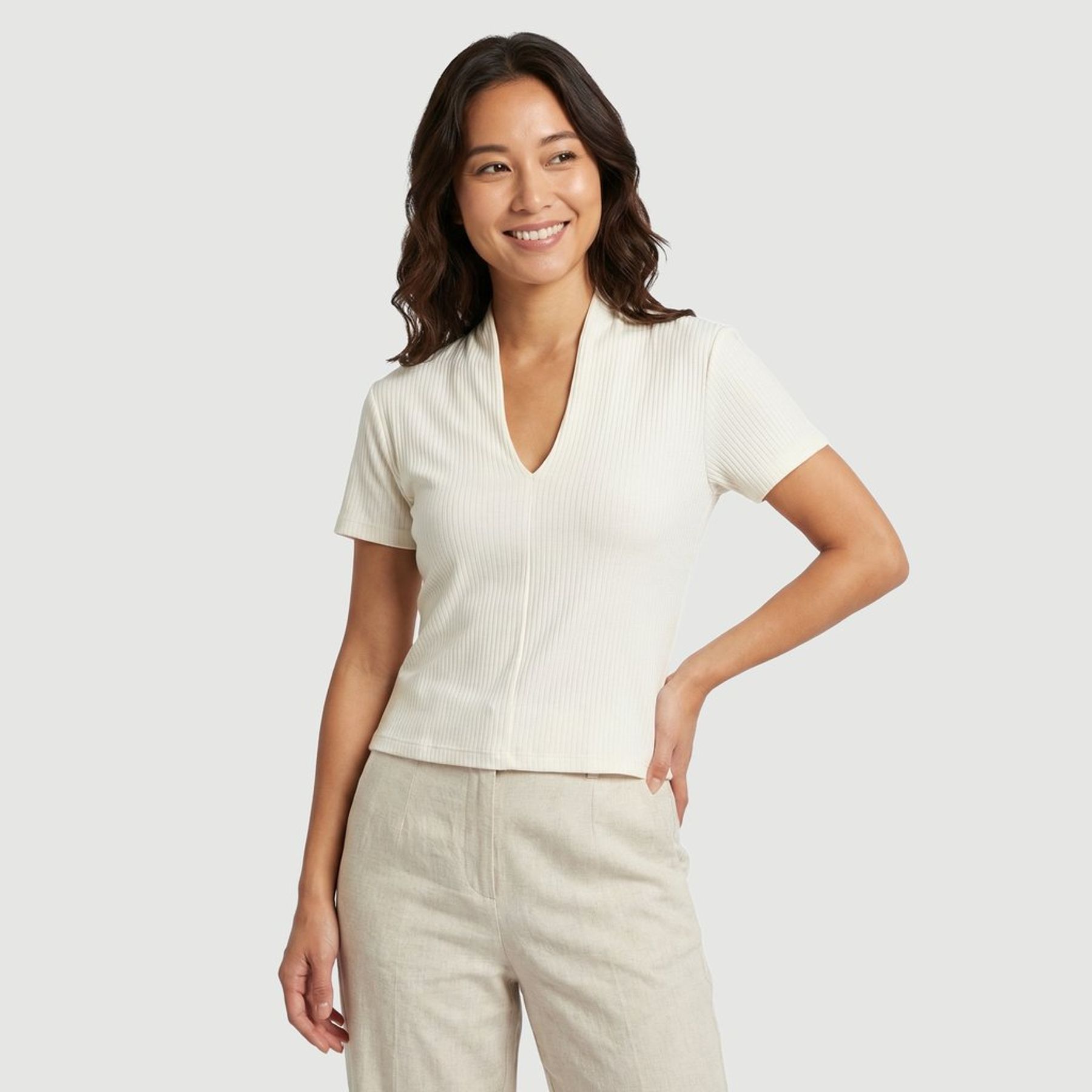 Blusa Feminina Manga Curta Infinita Cor Bege