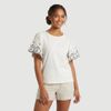 Blusa Feminina Manga Curta Ajustada com Estampa Stitch Creme - Disney