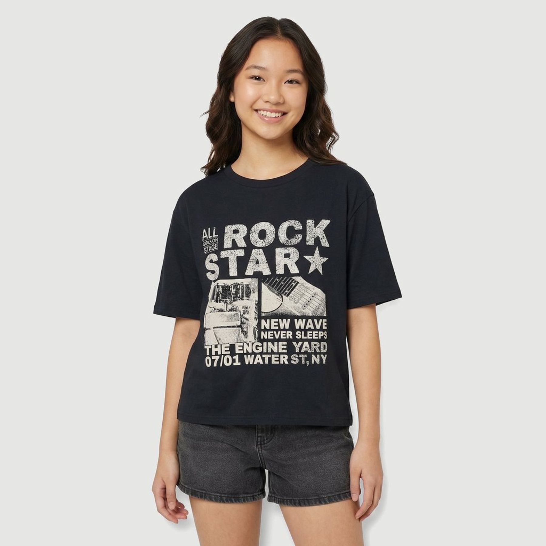 Camiseta Feminina Com Estampa e Rebite Dianna Preto