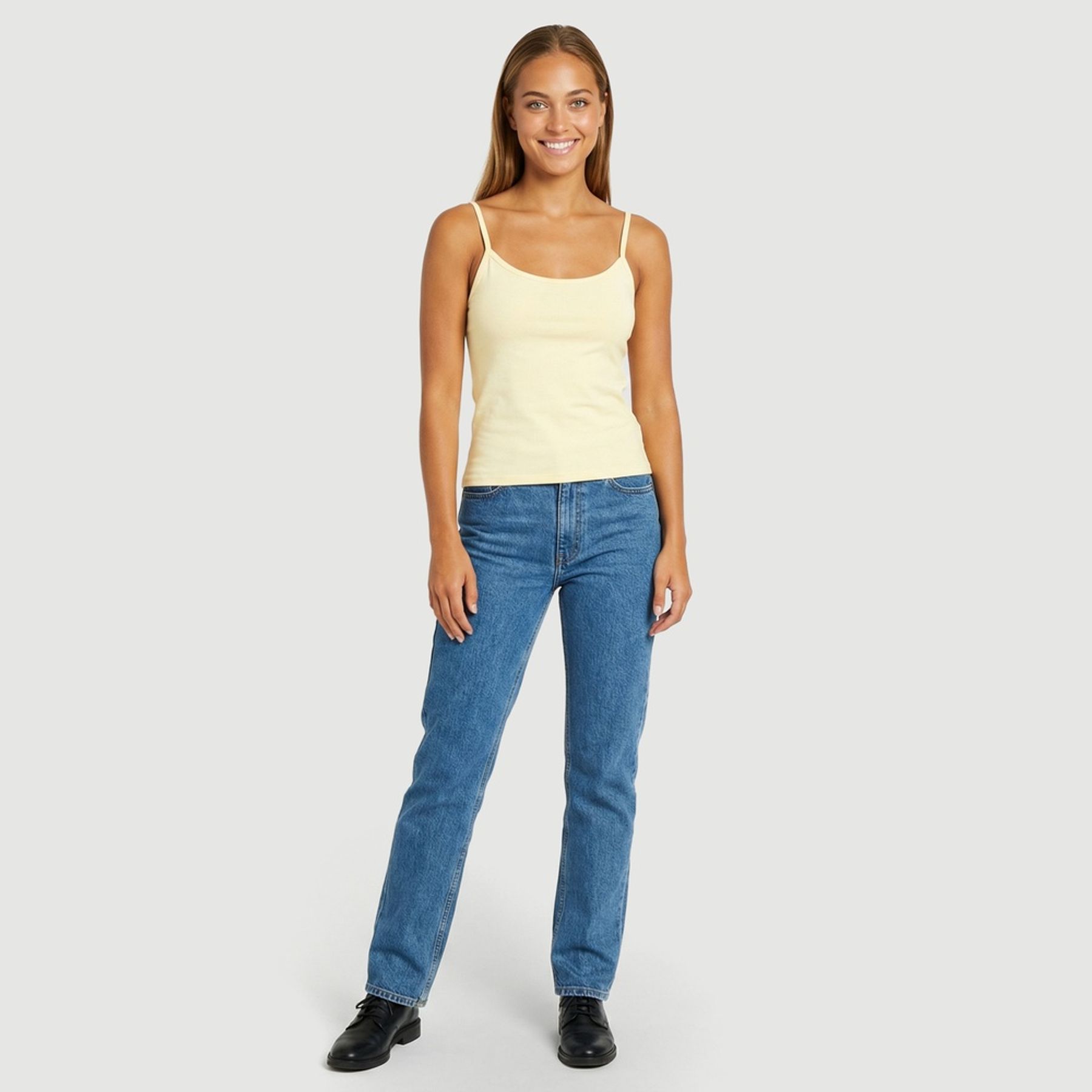 Economia de R$ 2,40A Blusa Sem Manga Liso Amarelo Viva Básico é perfeita para dias quentes, oferecendo leveza e praticidade ao visual.Seu tecido confortável proporciona liberdade de movimentos e fácil combinação.
