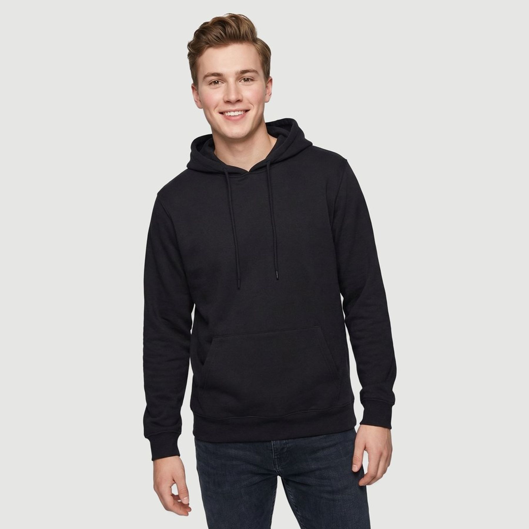 Blusão masc. c/ capuz e bolso canguru azul marinho - Id Basic