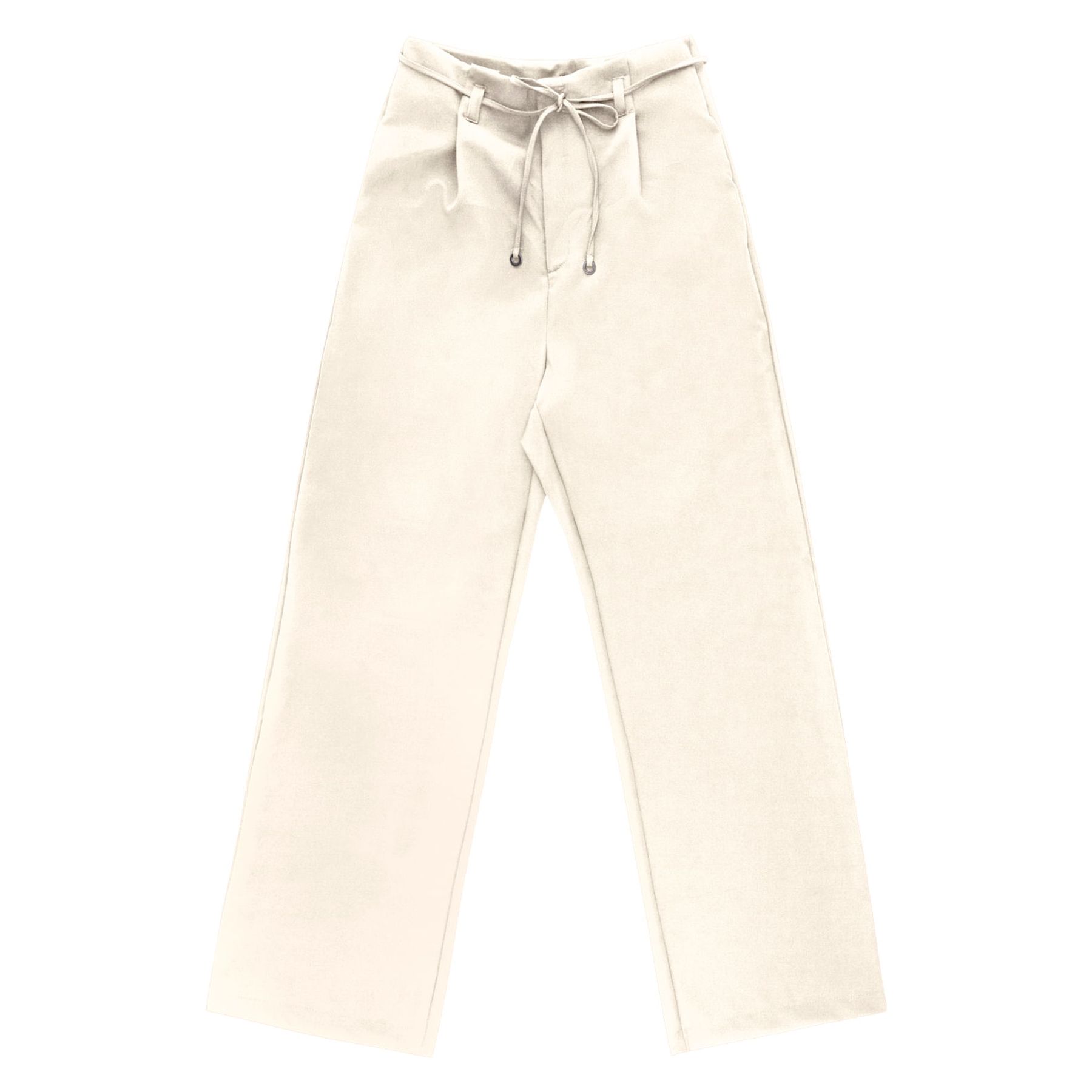 Calça Feminina Barrel com Pregas no Joelho Liso Creme - INK