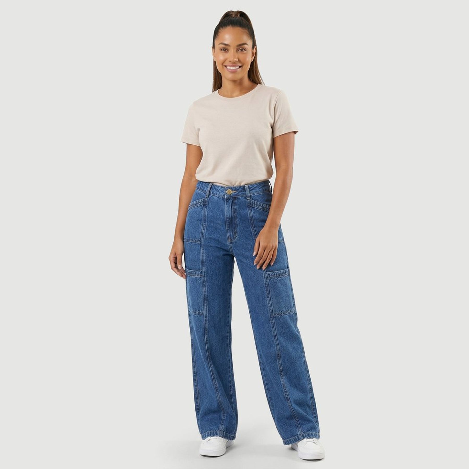 Calça jeans fem. wide leg cropped alta azul - Ink