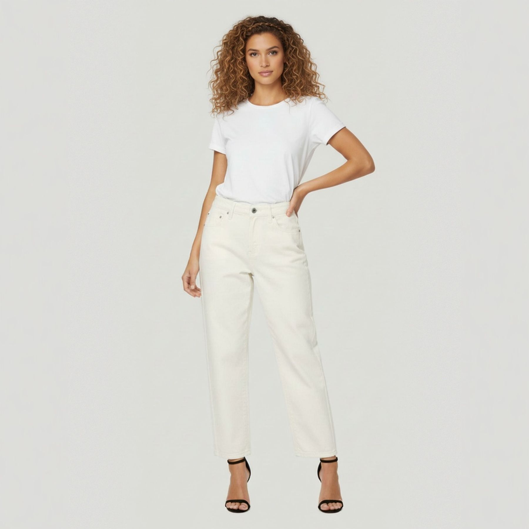 Calça Feminina Barrel com Pregas no Joelho Liso Creme - INK