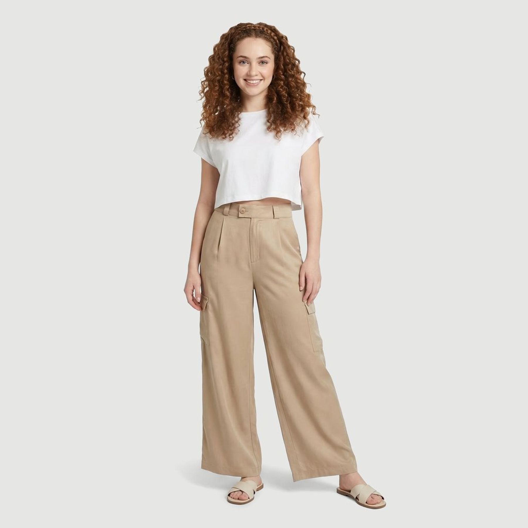Calça Feminina Barrel com Pregas no Joelho Liso Creme - INK