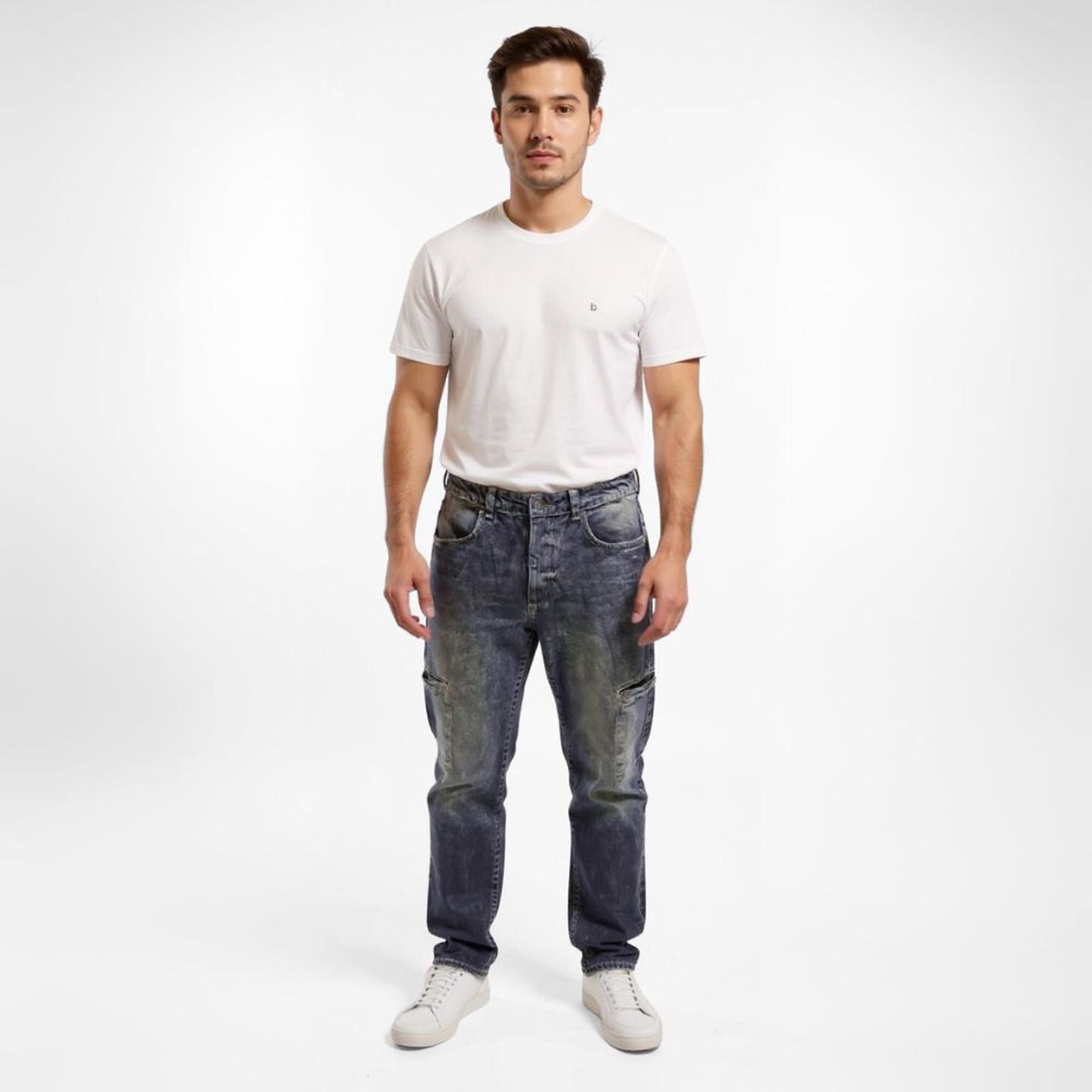 Calça Jeans Masculina Barrel Cargo Marmorizada Azul - Ink