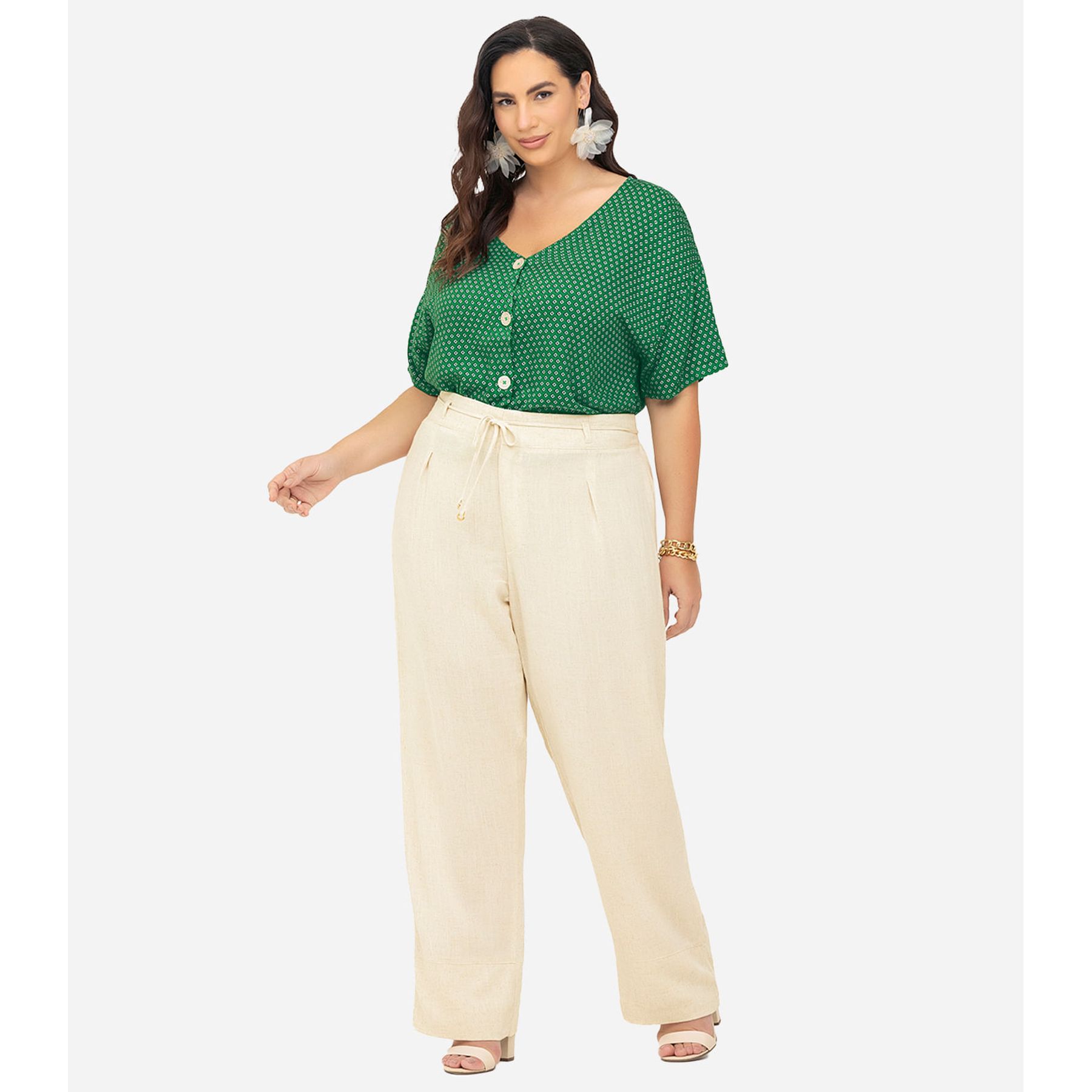 Calça Feminina Ampla Folhagem Verde Militar - Viva Casual