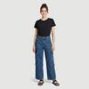 Calça jeans fem. wide leg cropped alta azul - Ink