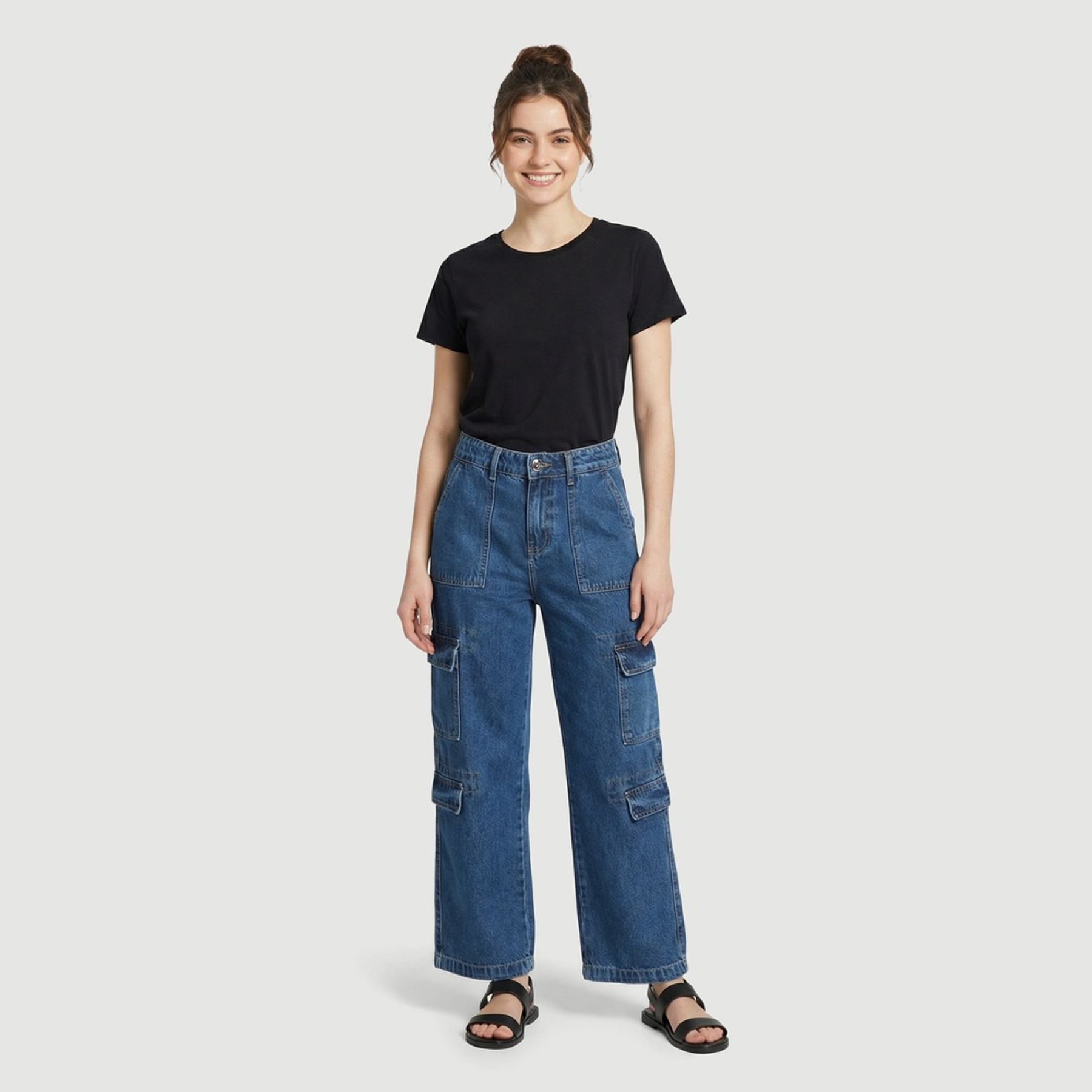 O cós com passantes e o fechamento frontal por botão e zíper trazem praticidade, enquanto os bolsos frontais e os bolsos cargo laterais acrescentam funcionalidade. A barra simples finaliza o design com um toque versátil para combinar com tênis, sandálias ou botas.