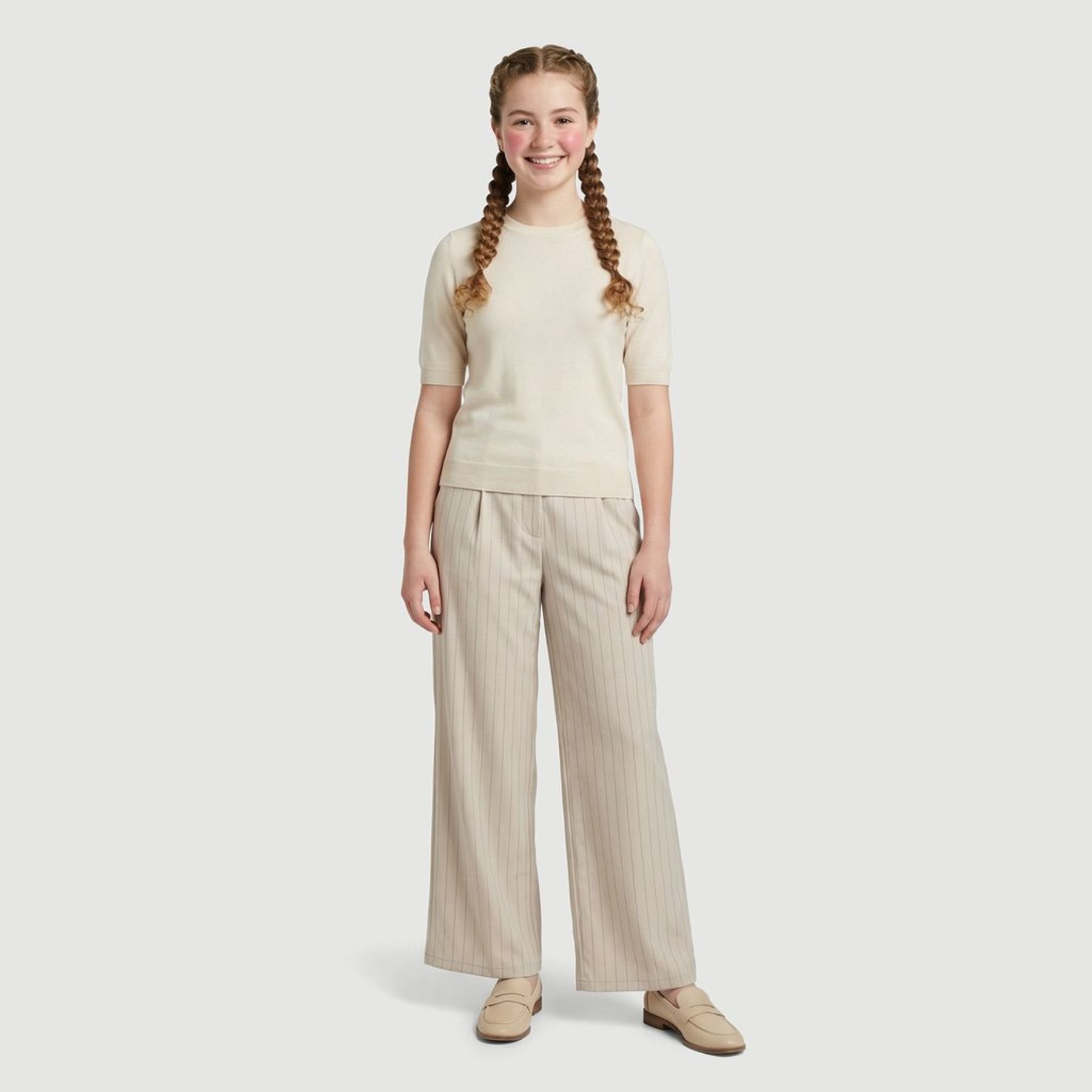 Economia de R$ 16,00A calça feminina Love Trend em alfaiataria é uma opção elegante e versátil para compor produções alinhadas. Em tom bege com risca de giz vertical, traz um visual clássico que transita bem do trabalho a ocasiões sociais.