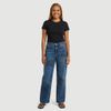 Calça Jeans Barrel com Recorte Azul Médio - Sawary