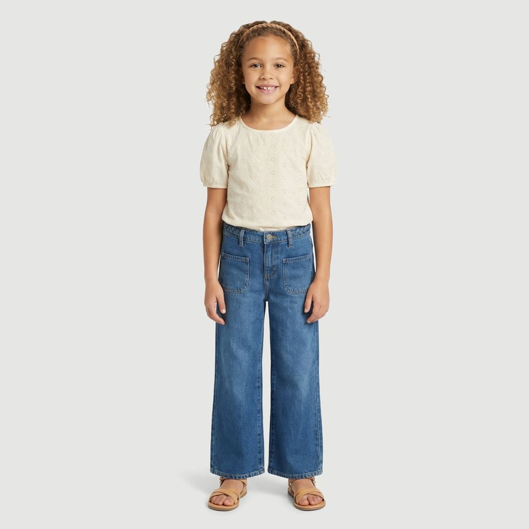 O destaque fica por conta do cós com detalhe trançado, além do fechamento frontal por botão e braguilha com zíper. Possui passantes para cinto, dois bolsos frontais grandes aplicados, costuras aparentes e barra simples.