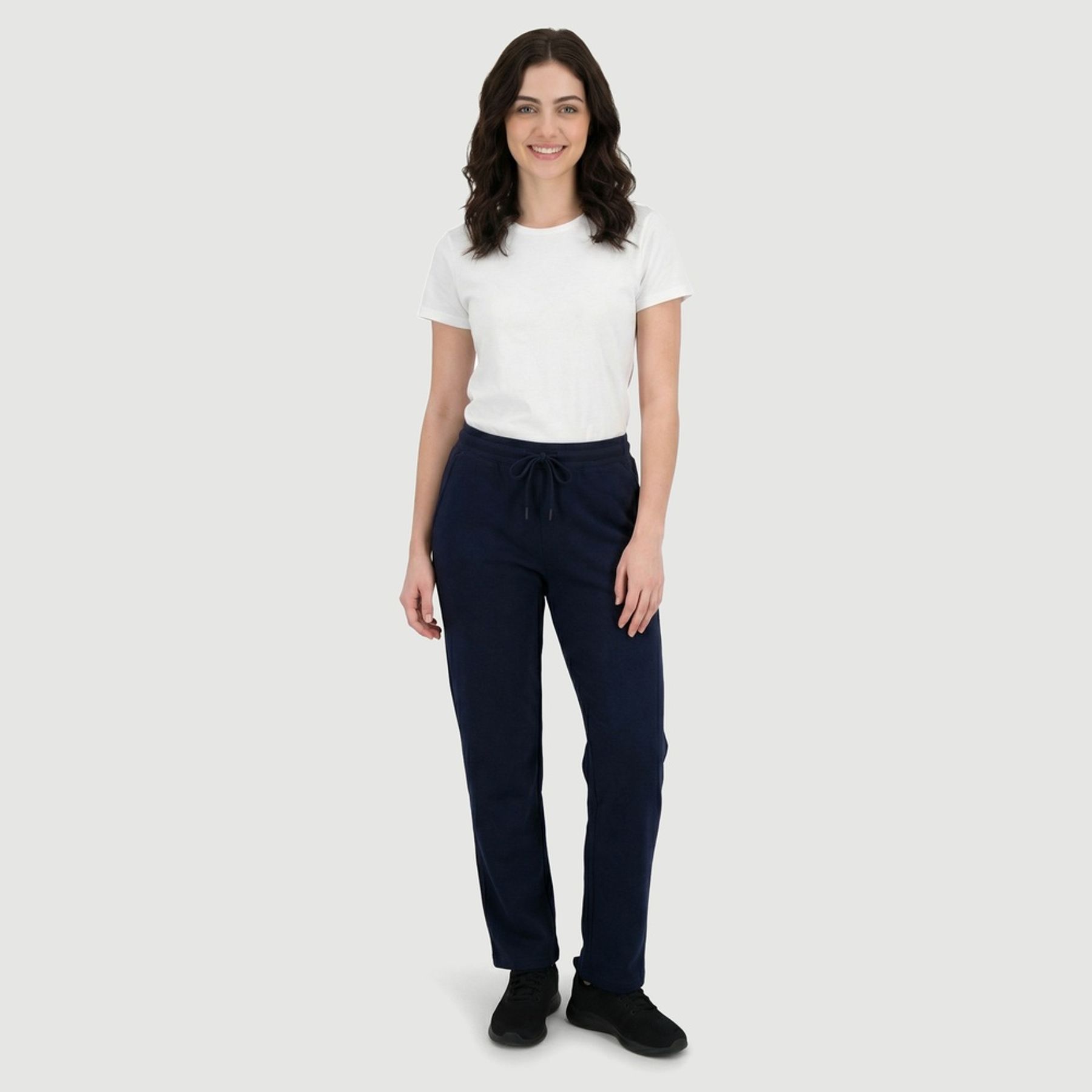 Economia de R$ 9,00A calça feminina Viva Basico em azul marinho é uma opção versátil para compor produções práticas com camisetas, blusas e tênis. Confeccionada em tecido misto com predominância de poliéster, tem fácil manutenção e bom caimento. A modelagem reta e o cós elástico com cordão frontal garantem ajuste confortável, enquanto os bolsos laterais adicionam funcionalidade. Itens inclusos: 01 calça.