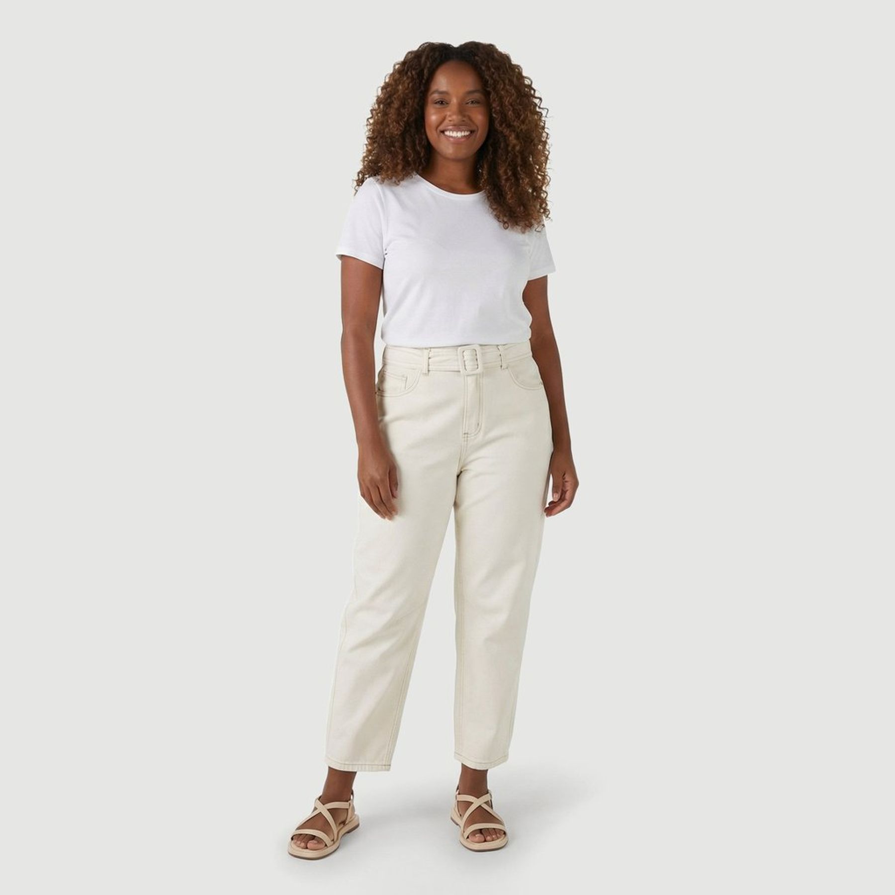 Economia de R$ 17,00A calça de sarja feminina Ink modelo barrel é uma escolha versátil para produções neutras e atuais. Em sarja lisa na cor creme, tem visual minimalista e fácil de combinar.