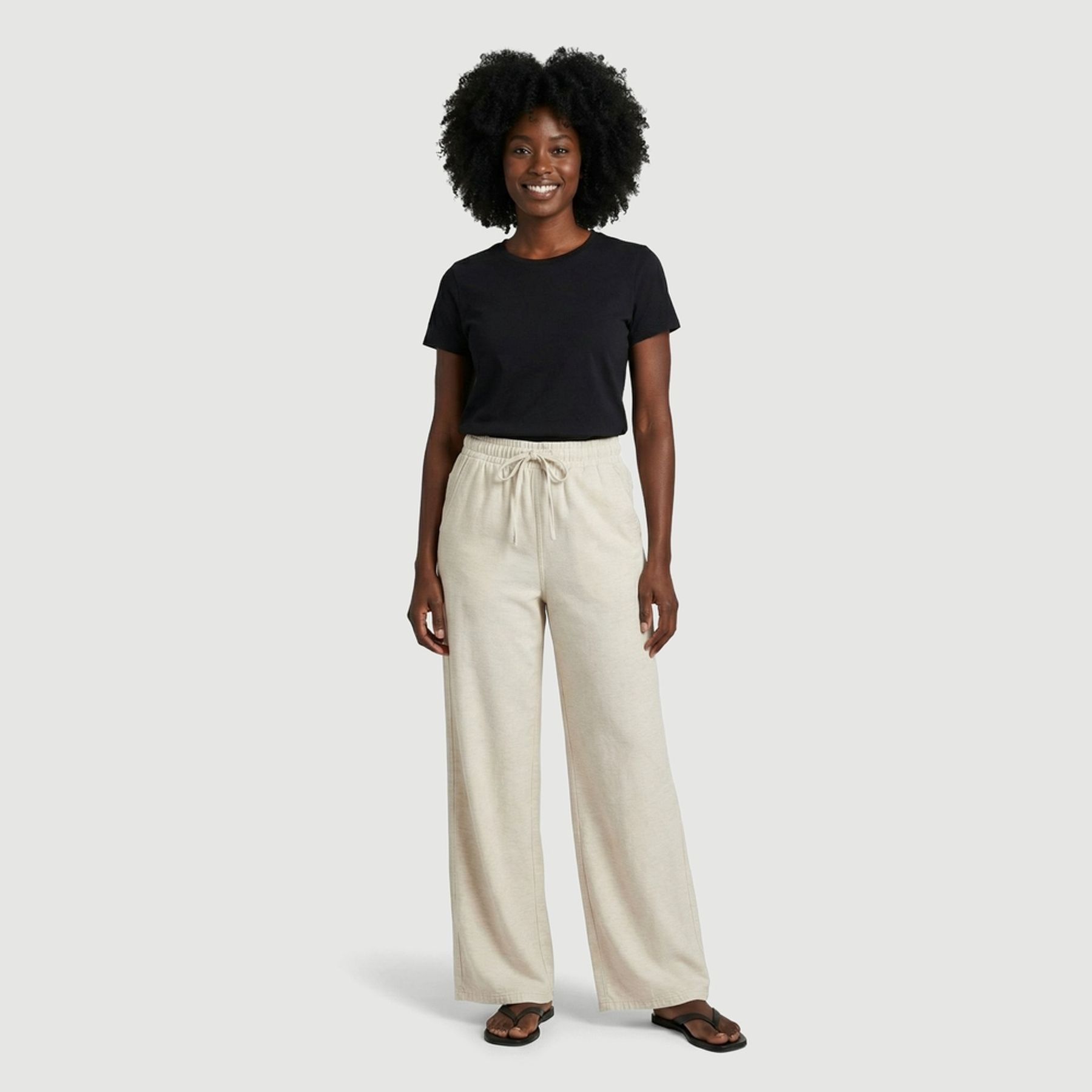 Economia de R$ 18,00A calça wide leg feminina Sawary é uma opção prática para compor produções com visual minimalista e fácil de combinar. Em tom bege e acabamento liso, traz tecido plano com aparência de linho/algodão e textura levemente mesclada, ideal para diferentes ocasiões.
