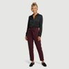 Economia de R$ 13,00A calça feminina modelo carrot na cor vinho é uma opção versátil para compor produções fáceis de combinar. Confeccionada em 100% viscose, oferece toque leve e caimento agradável para diferentes momentos, do trabalho ao passeio.