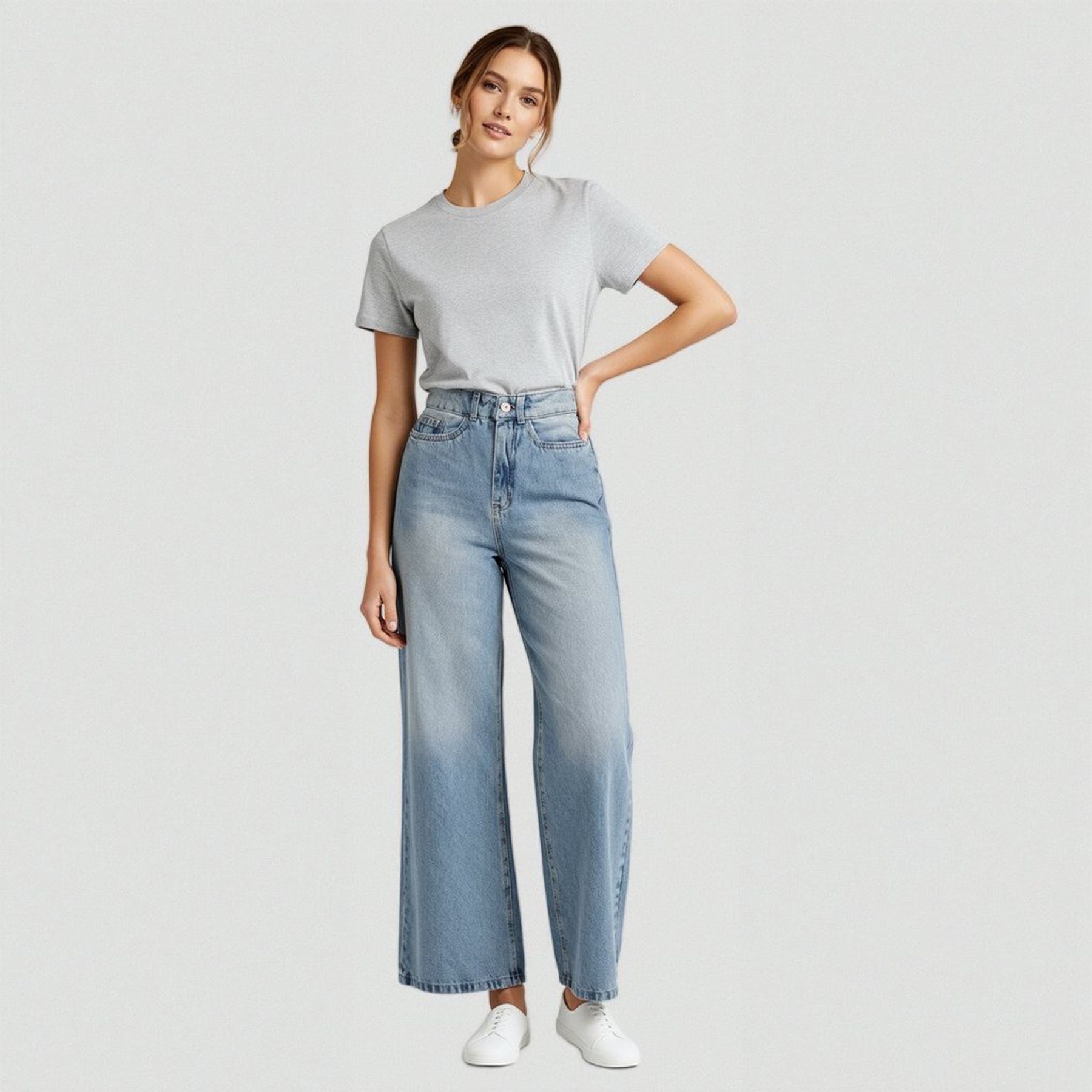 Calça Jeans Feminina Wide Leg Slim Brilhos Azul - Ink