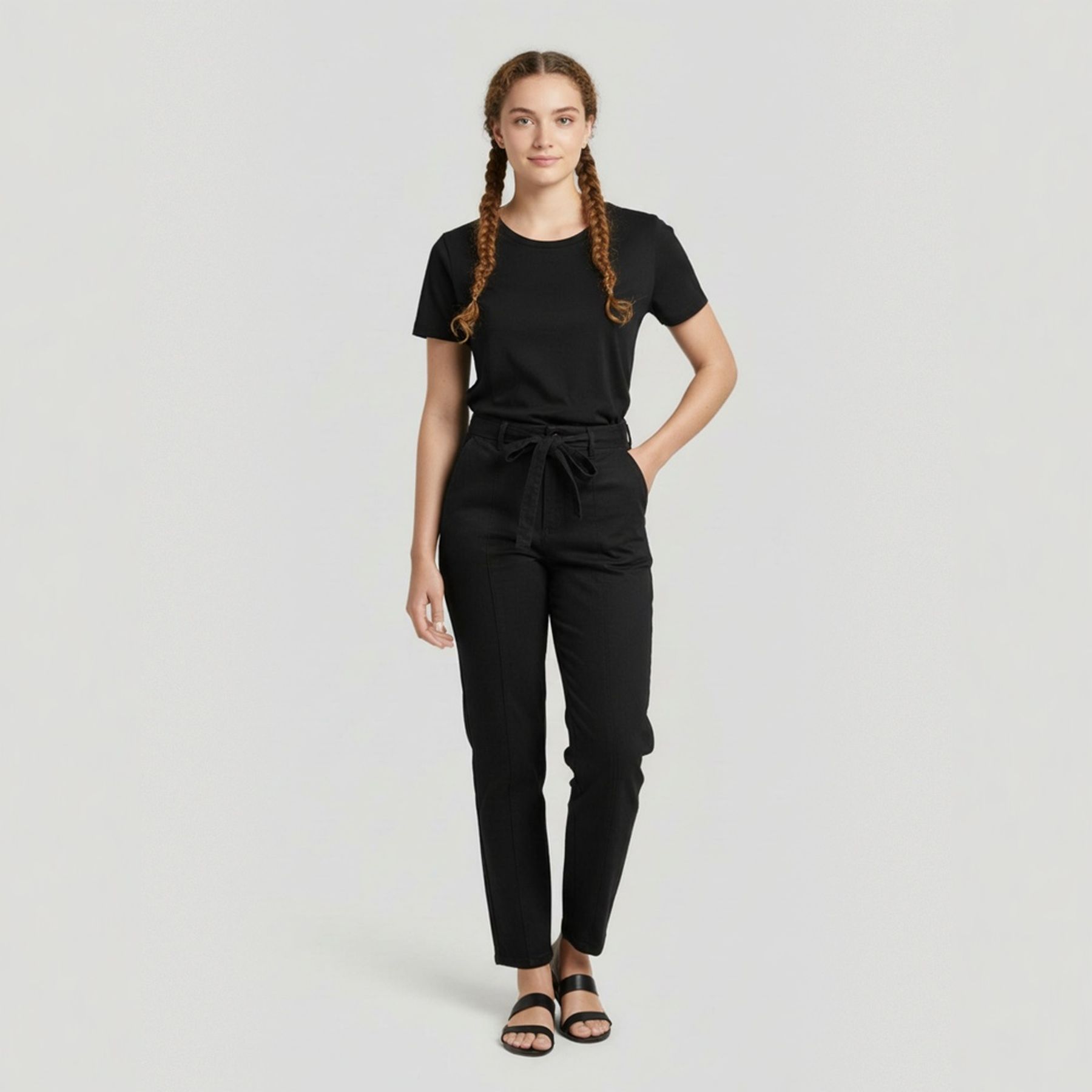 Calça Jeans Feminina Carrot Preta Com Amarração Lisa - INK