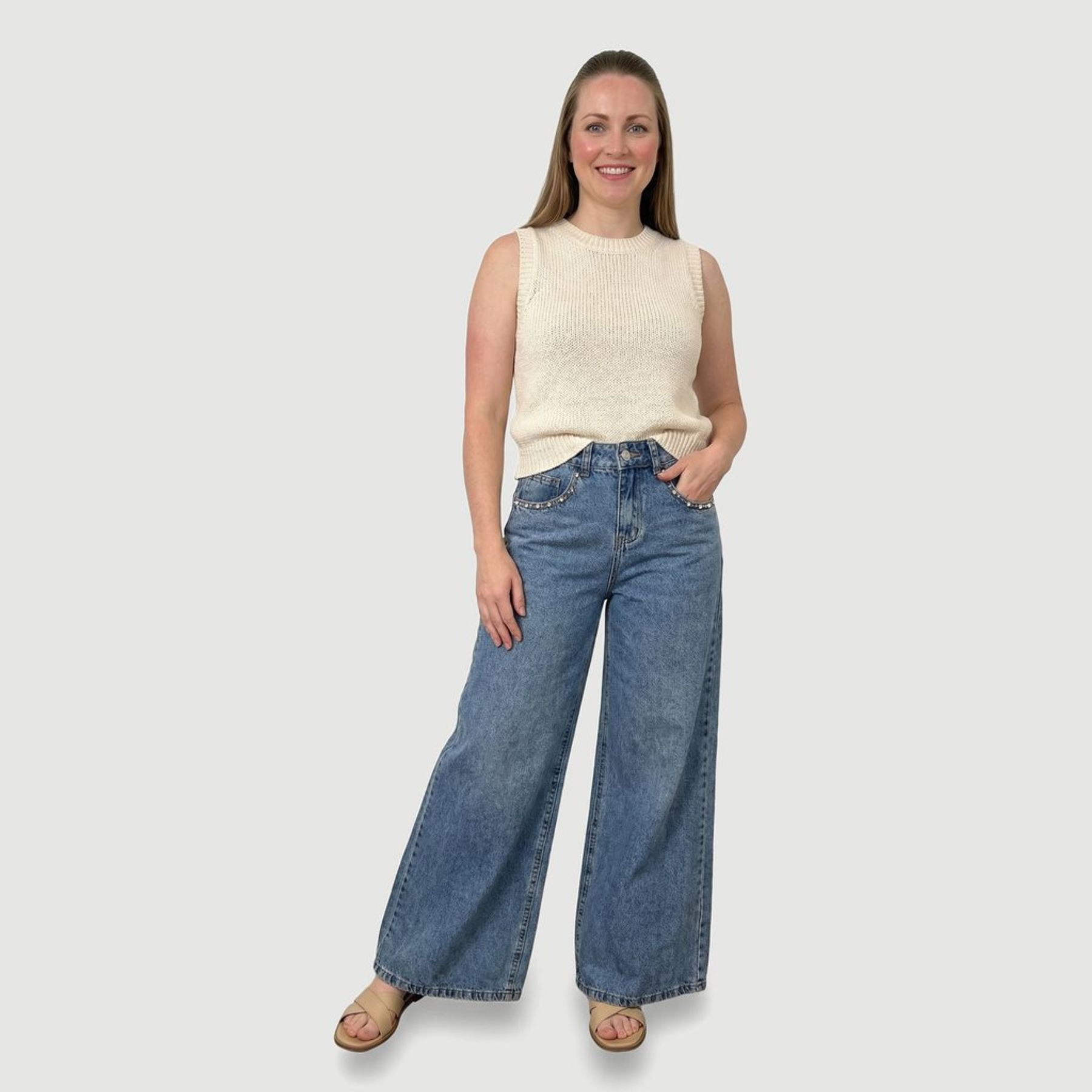 Calça jeans feminina wide leg cós assimétrico - Sawary