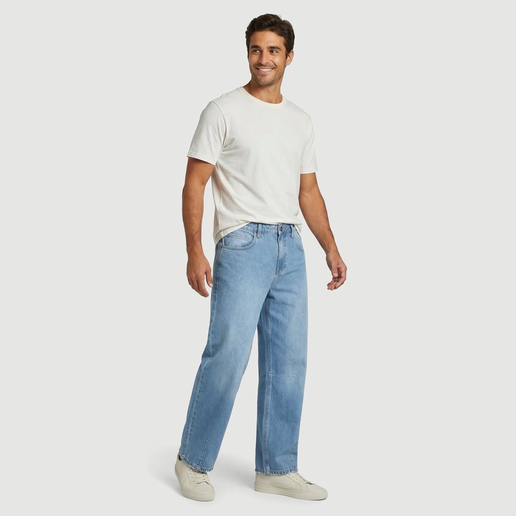 Calça Jeans Barrel Marmorizada Azul Claro - INK