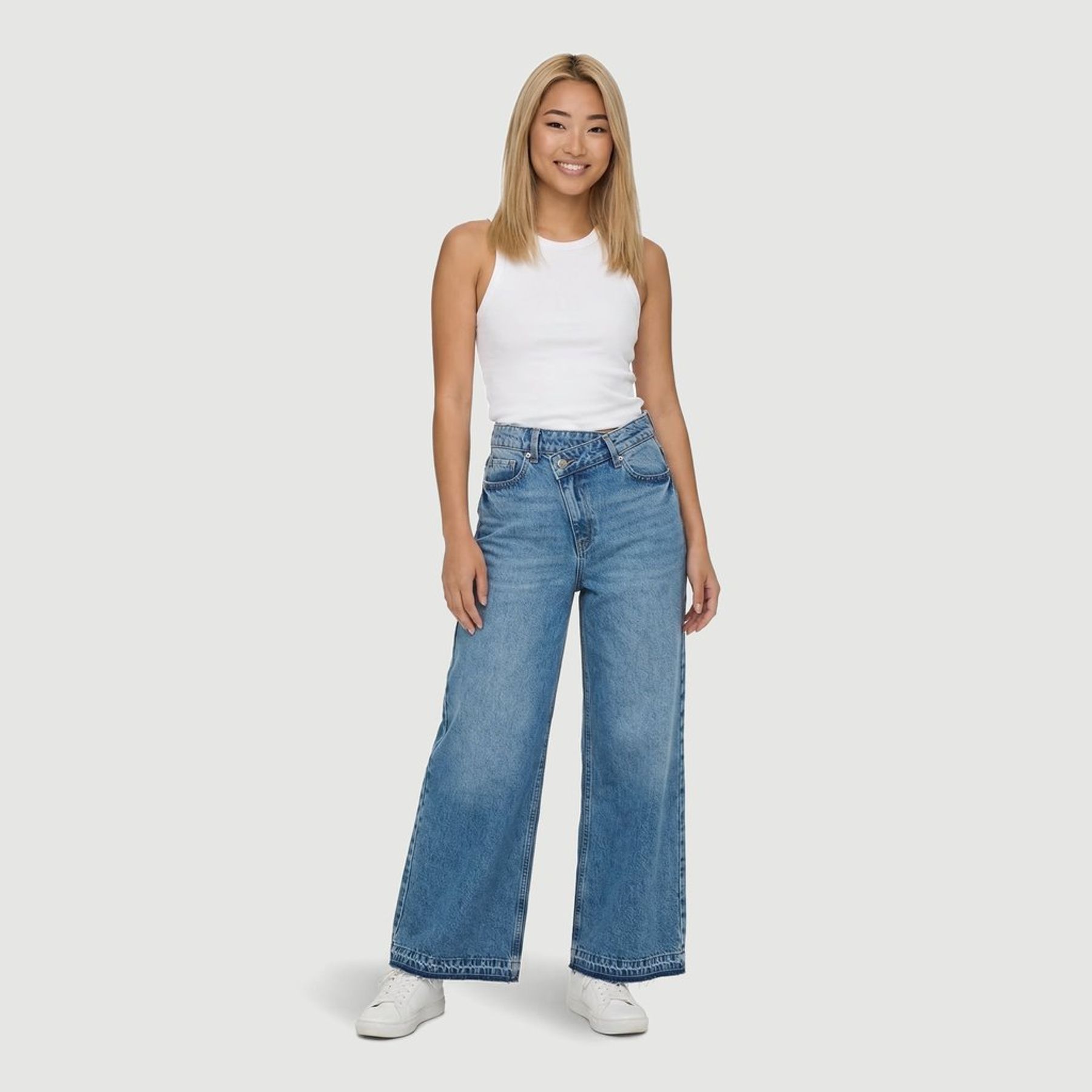Calça jeans feminina wide leg cós assimétrico - Sawary