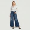 Calça jeans feminina wide leg cós assimétrico - Sawary