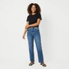 Economia de R$ 13,00Calça jeans feminina com modelagem reta e cintura alta, ideal para compor produções versáteis. Confeccionada em jeans de composição mista com predominância de algodão, oferece bom caimento e conforto. A lavagem azul média tem leve efeito de lavanderia e bigodes suaves na parte frontal, trazendo um visual moderno e fácil de combinar. Possui fechamento por botão e zíper, passantes para cinto e bolsos funcionais.
