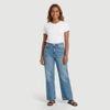 Em azul com lavagem clara e leve efeito usado, tem acabamento liso e fácil de combinar com camisetas, camisas e jaquetas. A modelagem com cintura média/alta e pernas retas mais amplas favorece o caimento e garante praticidade.