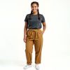 Economia de R$ 13,00Calça feminina de sarja na cor caramelo, modelo estilo jogger com caimento confortável e moderno. Possui cintura com cordão ajustável, cós elástico e bolsos funcionais, garantindo praticidade e estilo no dia a dia. Versátil, é perfeita para compor looks casuais e despojados com muito conforto.