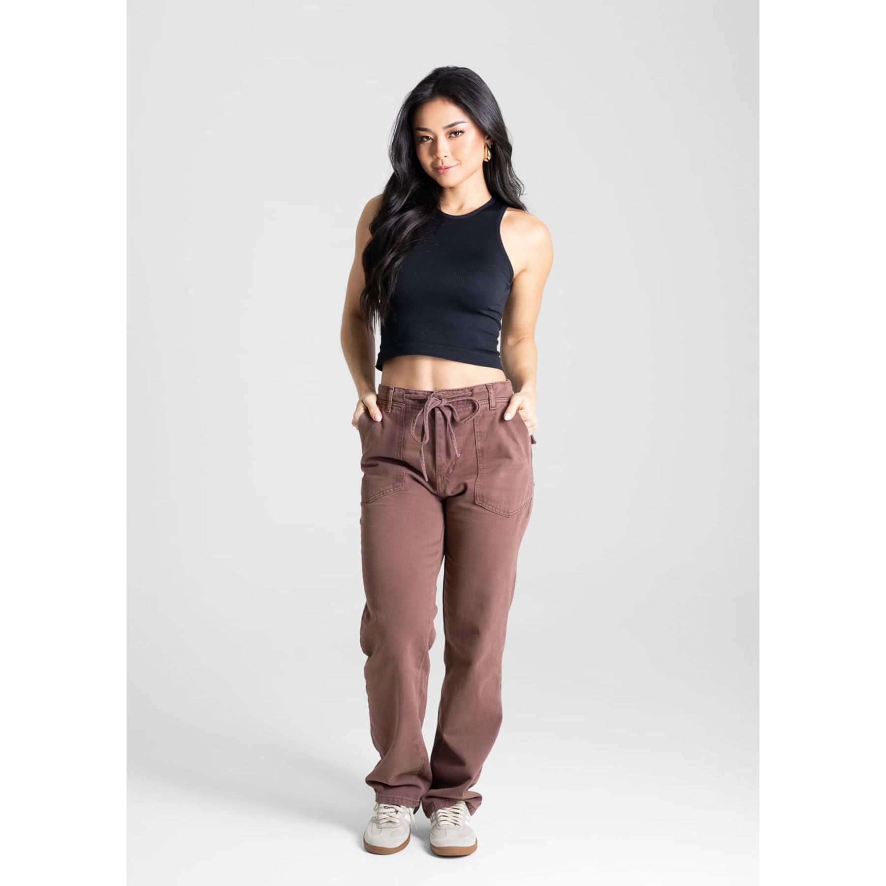 Economia de R$ 115,00A calça Sarja Jeans Reta - Sawary combina conforto da sarja com modelagem reta ajustada, ideal para mulheres de baixa estatura. Tecido suave e toque agradável.