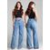 Calça Jeans Feminina Wide Leg Slim Brilhos Azul - Ink