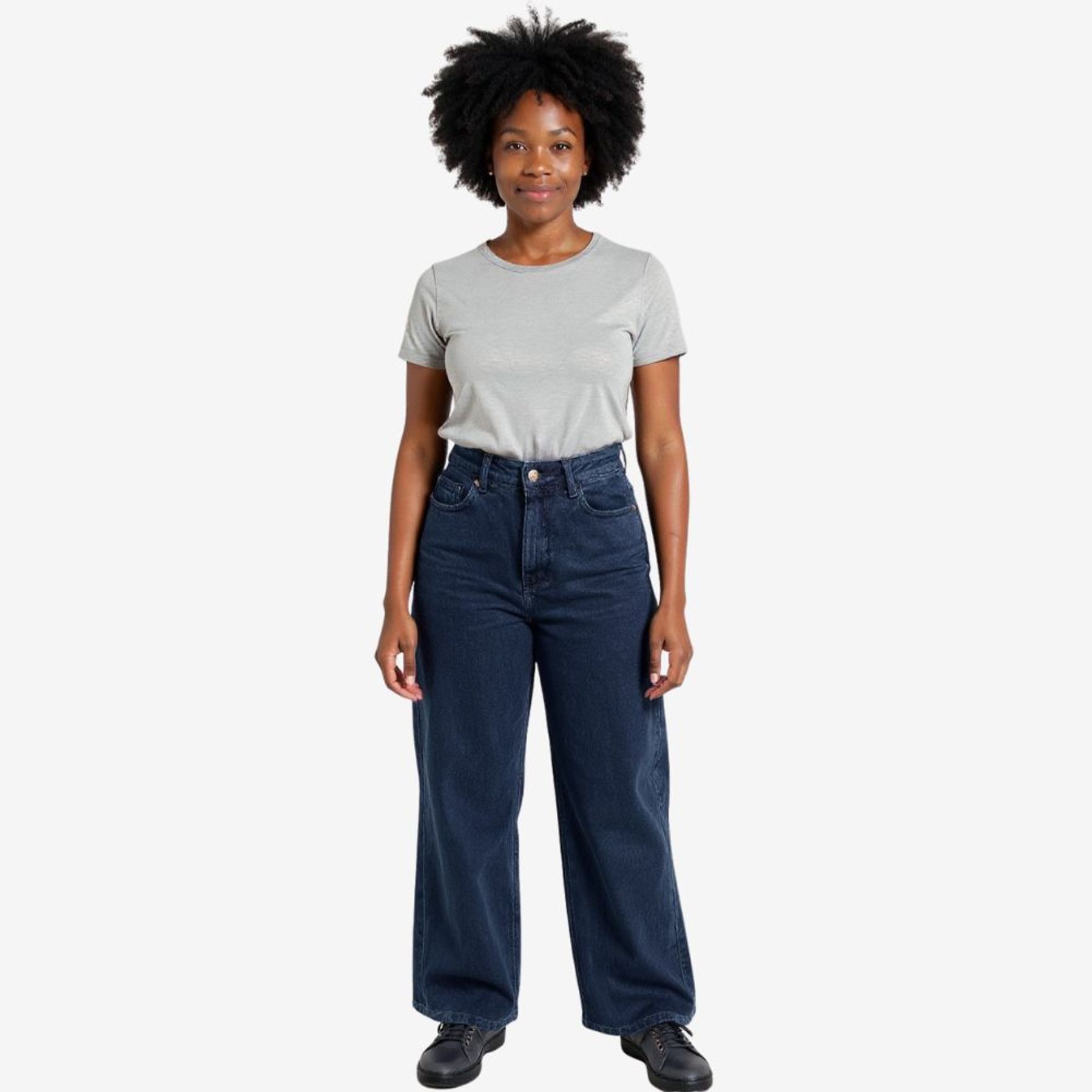 Economia de R$ 13,00Calça jeans feminina wide leg, confeccionada em denim de alta qualidade no tom azul escuro. Modelo de perna ampla que une conforto e estilo, com caimento moderno e sofisticado. O acabamento liso garante versatilidade, tornando a peça ideal para compor produções casuais ou mais elegantes.