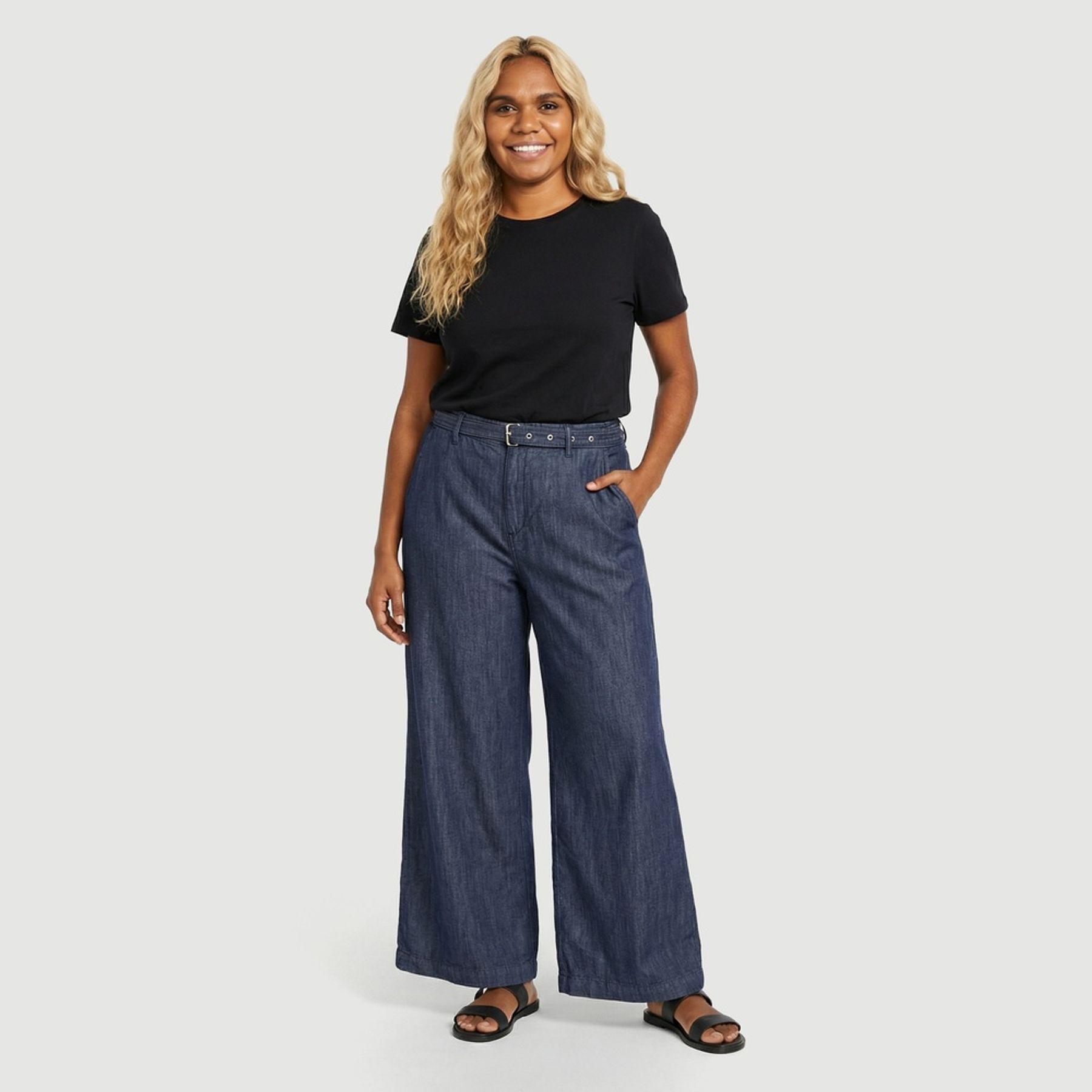 Economia de R$ 16,00A calça jeans plus size feminina Ink traz modelagem wide leg com pernas amplas, ideal para compor looks modernos com praticidade. Em jeans azul escuro liso com aspecto mesclado do denim, é uma peça versátil para diferentes combinações.
