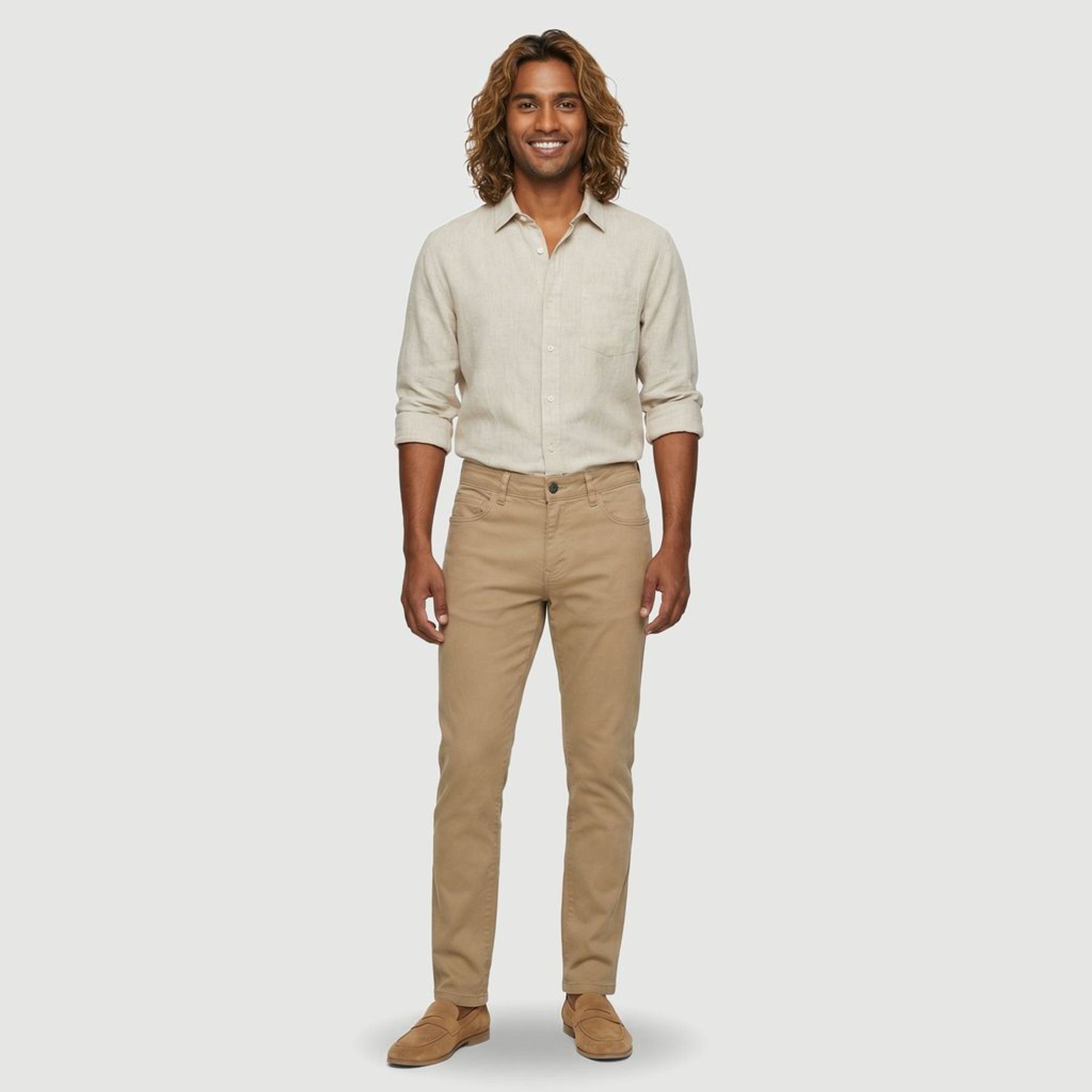 Calça Masculina Alfaiataria Com Pregas Bege Lisa - Ink