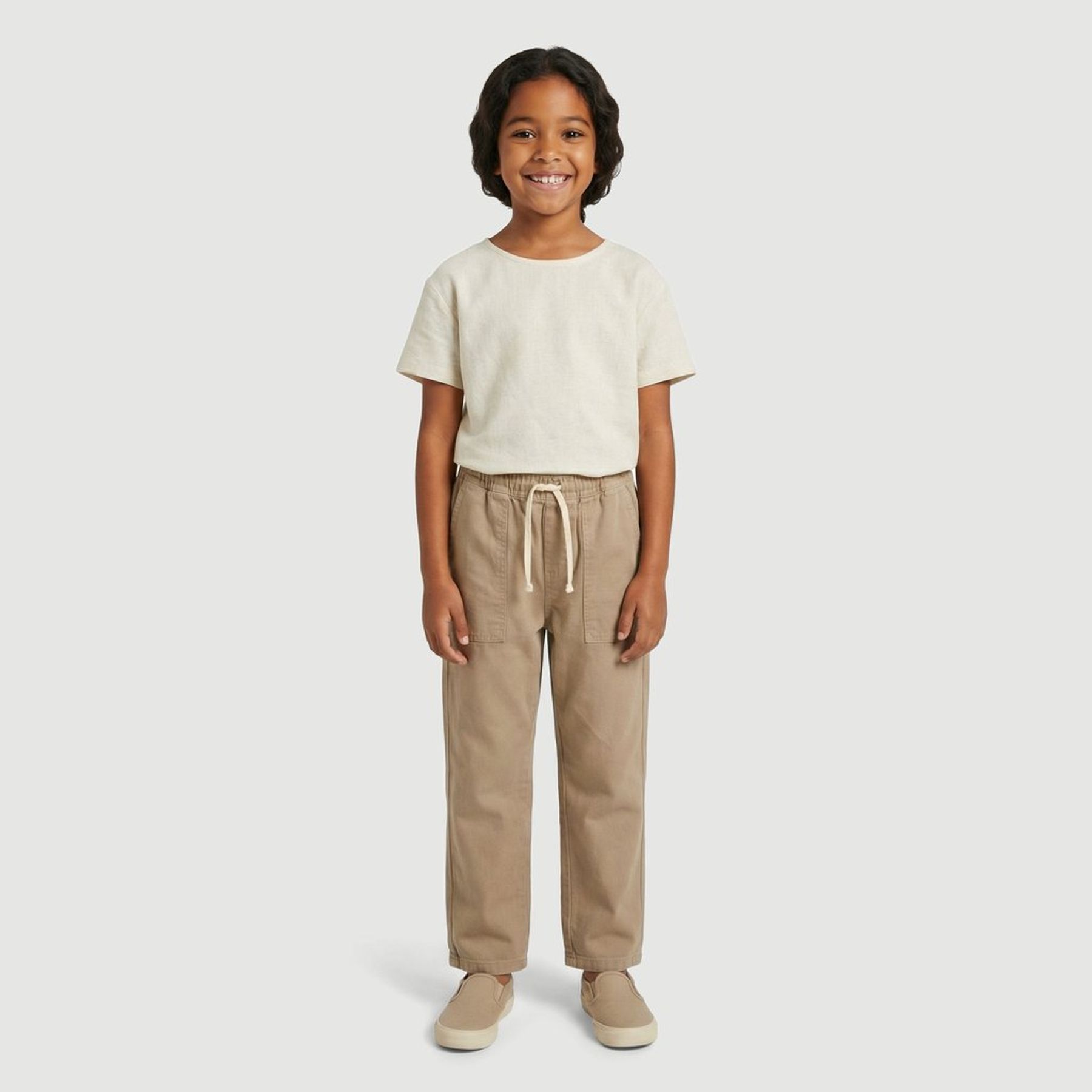 Calça Infantil Reta com Bolsos Utilitários Bege - Ink
